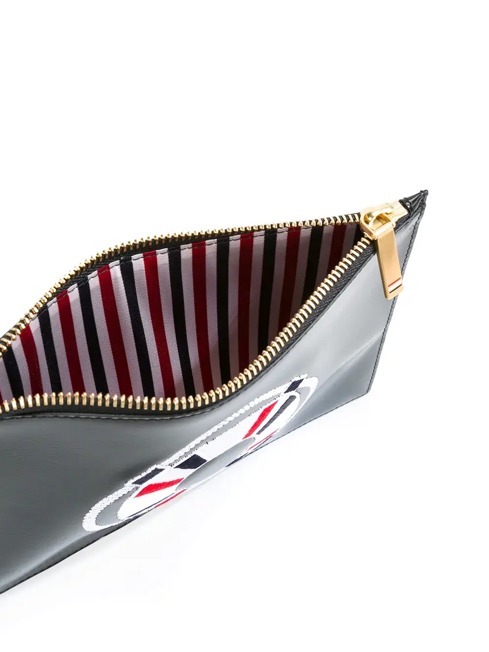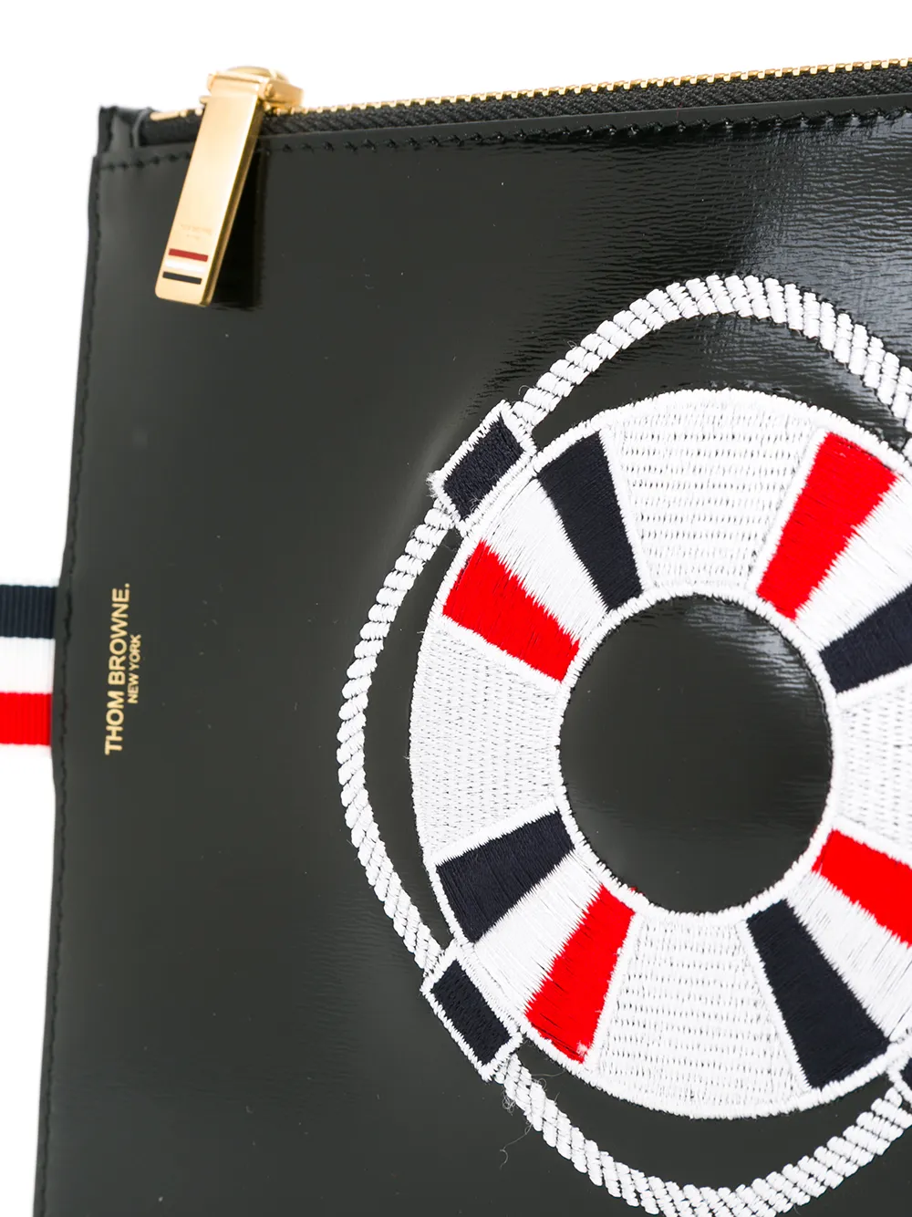 Черный кожаный клатч с вышивкой от Thom Browne.