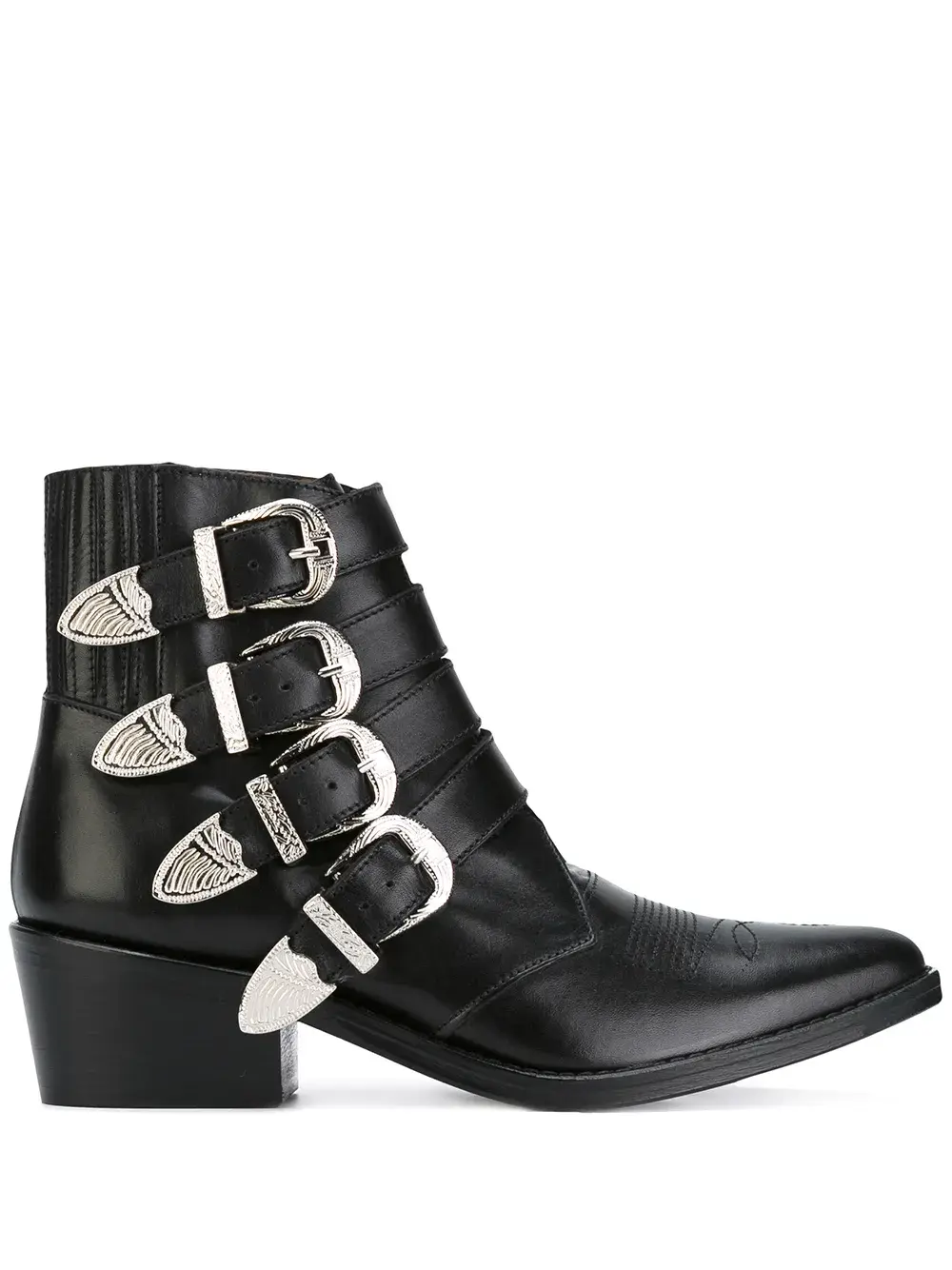 Черные ботильоны из телячьей кожи с несколькими ремешками от Toga Pulla.
