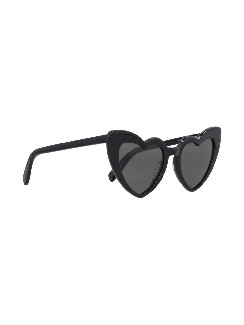 Черные солнцезащитные очки из ацетата в оправах-сердцах от Saint Laurent (Сен Лоран). Логотип бренда на внешней стороне дужки, оправа в форме сердец, темно-серые линзы.