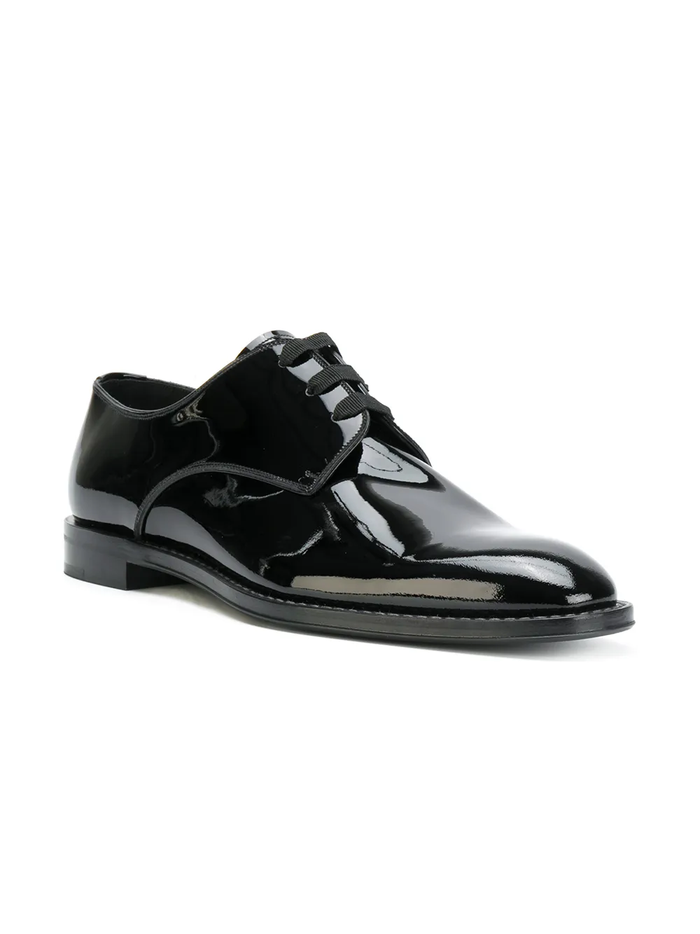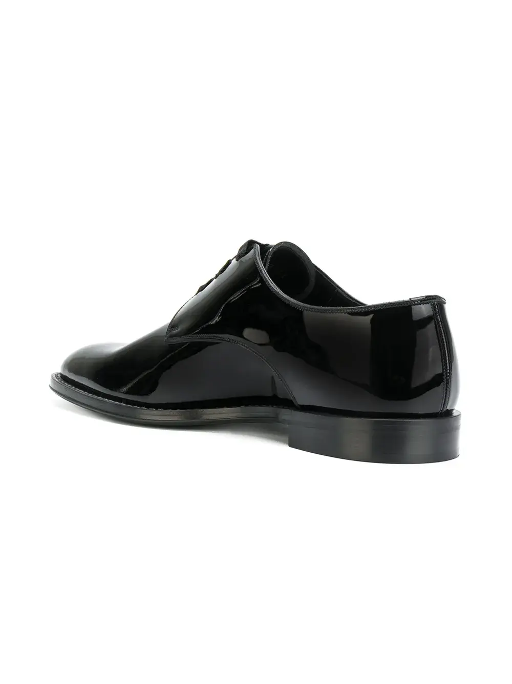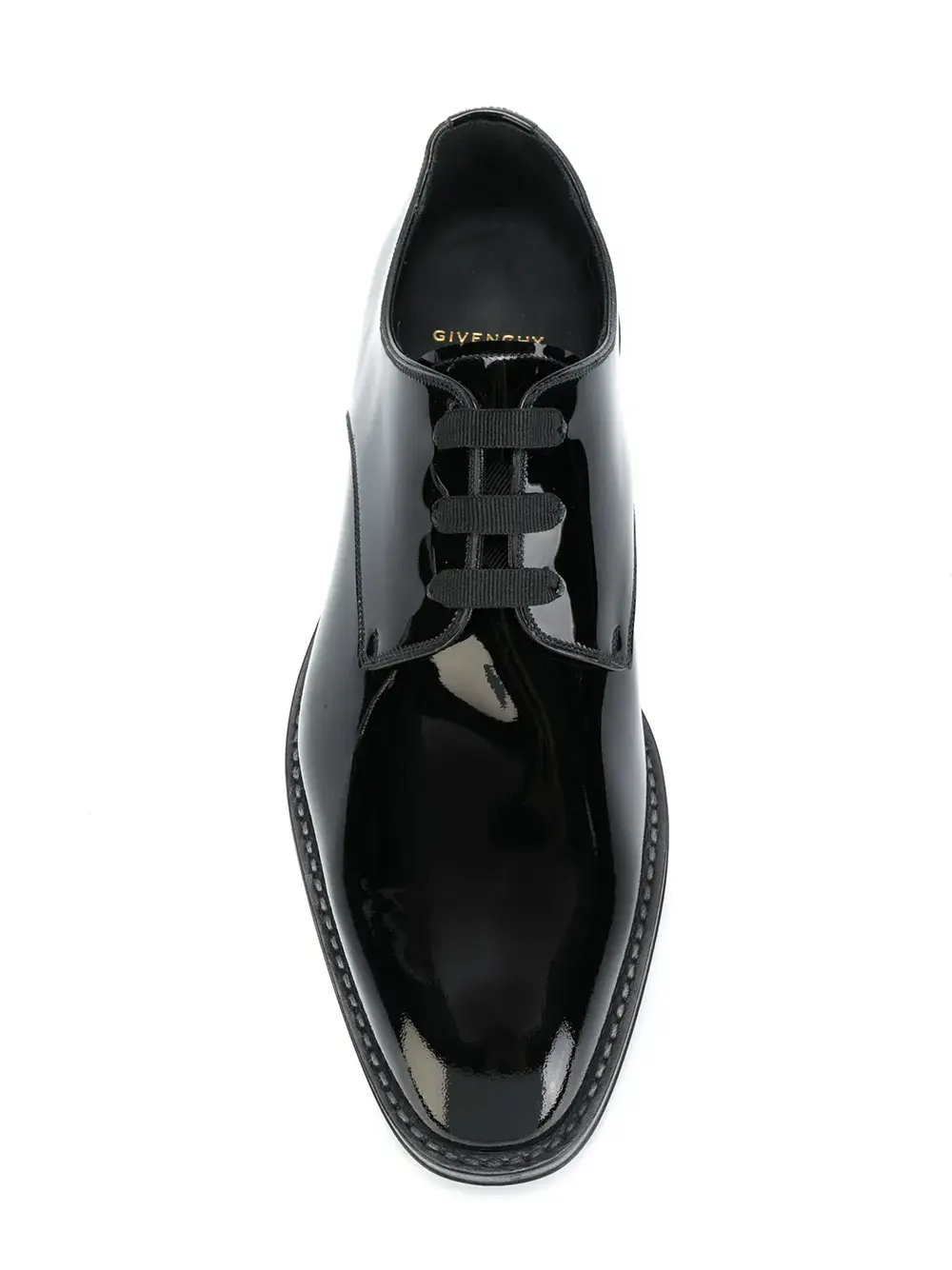 Черные классические ботинки-дерби из лакированной кожи от Givenchy (Живанши). Миндалевидный носок, шнуровка спереди, фирменная стелька, низкий каблук.
