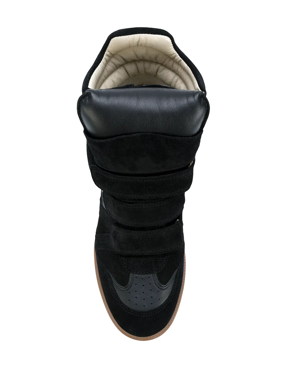 Черные кожаные кроссовки на танкетке от Isabel Marant(Изабель Марант). Высокая щиколотка, регулируемые лямки, скрытый каблук-танкетка.