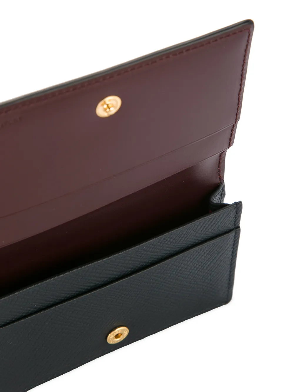 Синий кожаный кошелек на кнопке от Smythson. Модель в стиле унисекс.