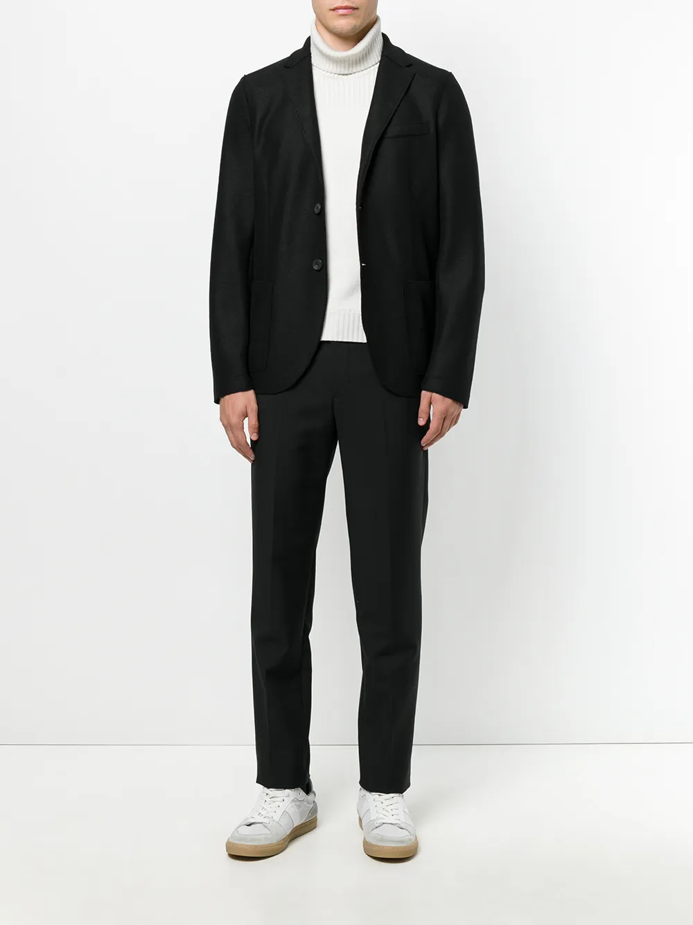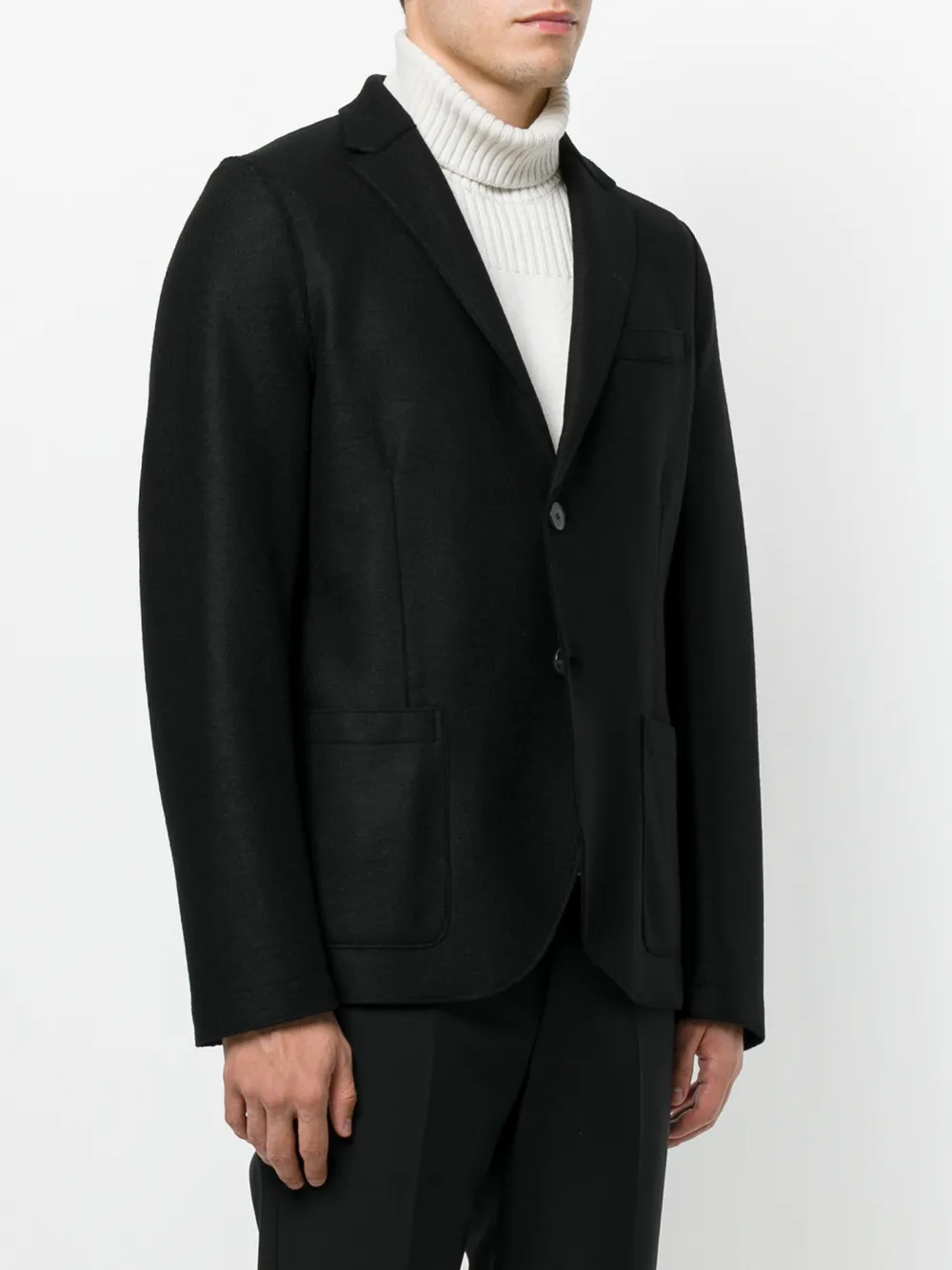 Черный классический пиджак из натуральной шерсти от Harris Wharf London.