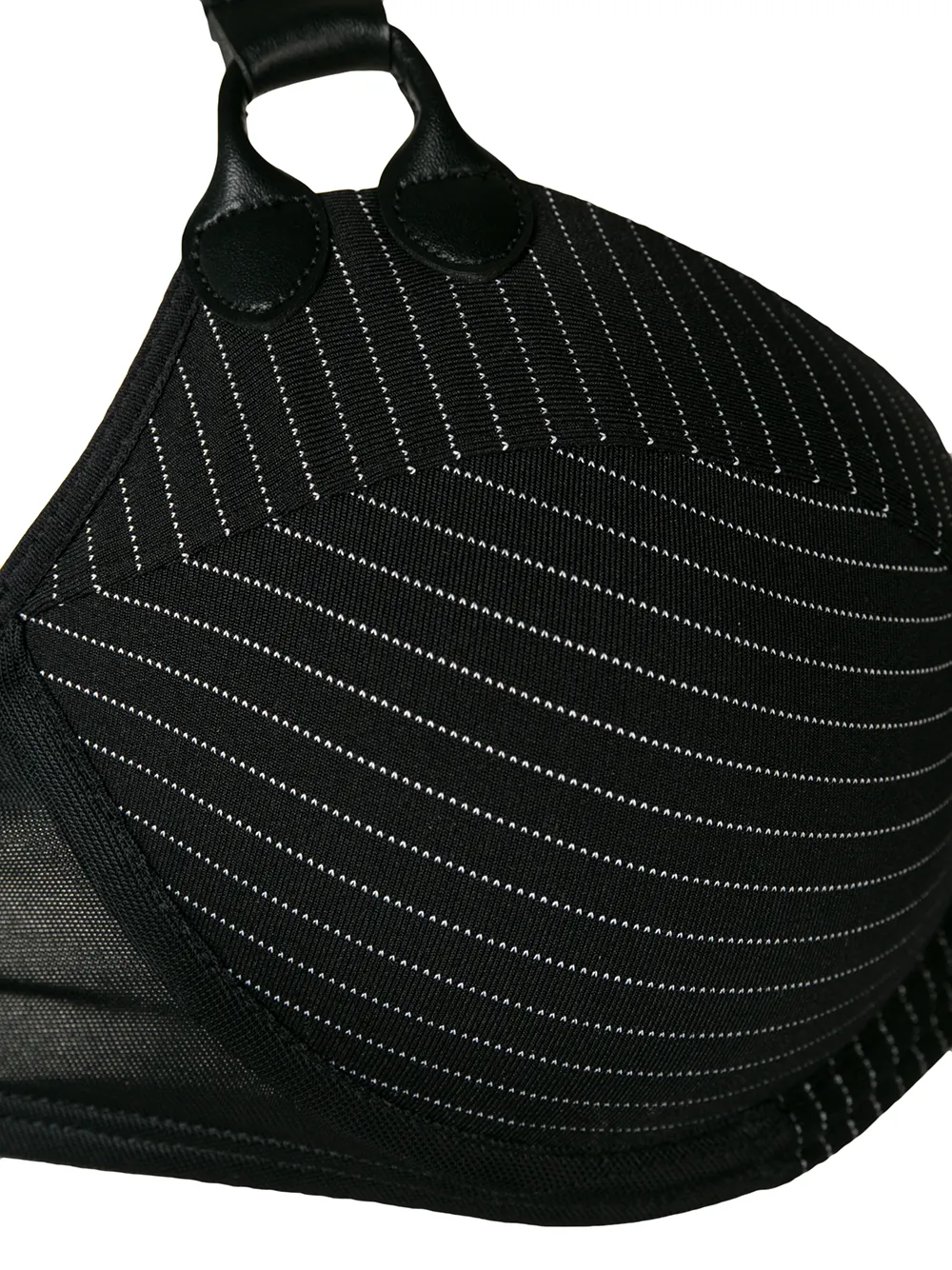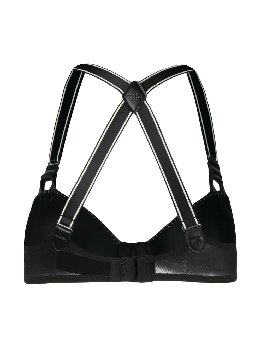 Черный бюстгальтер-балконет 'Gloria' от MARLIES DEKKERS. Тонкие полоски, чашки с проволокой, двойная застежка на крючок. Примерка белья разрешена исключительно поверх собственного.