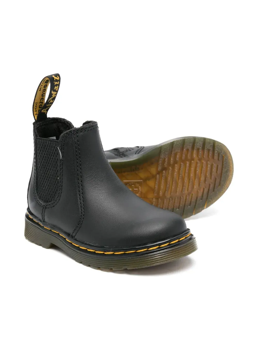 2976 Chelsea boot от Dr. Martens Kids. Закругленный носок, петля для подтягивания сзади, эластичные боковые панели, плоская резиновая подошва и декоративная строчка. Цвет: черный.