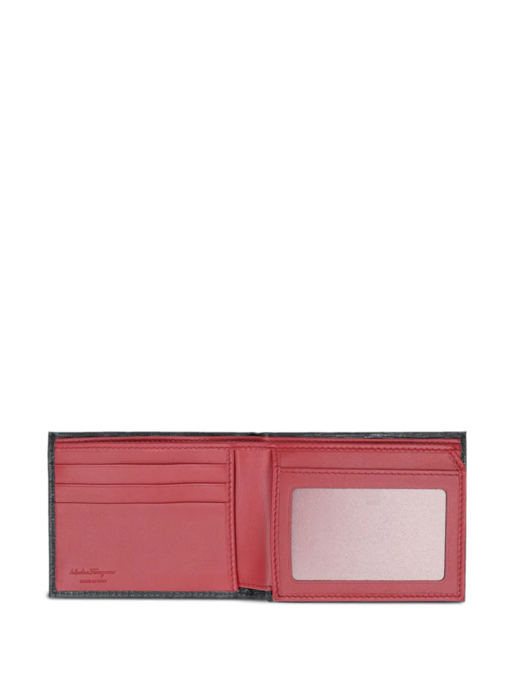 Double Gancio billfold wallet от Salvatore Ferragamo (Сальваторе Феррагамо). Внутренняя печать с тисненым логотипом, несколько отделений для карт, отделение для купюр и прозрачное окошко для ID карты. Цвет: черный.