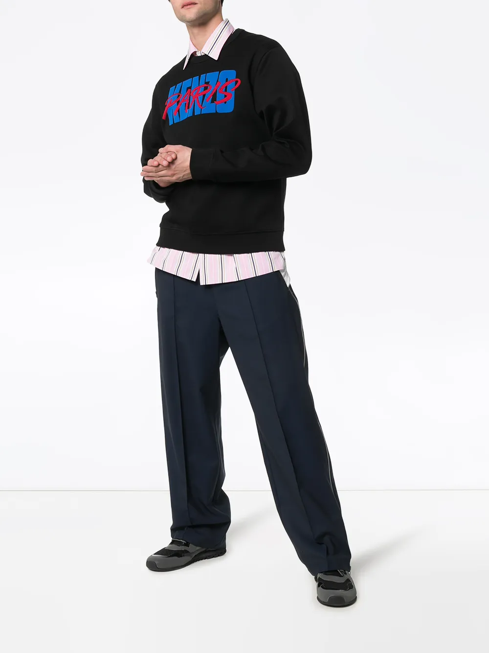 Толстовка с логотипом от Kenzo (Кензо). Круглый вырез под горло в рубчик и длинные рукава. Цвет: черный.