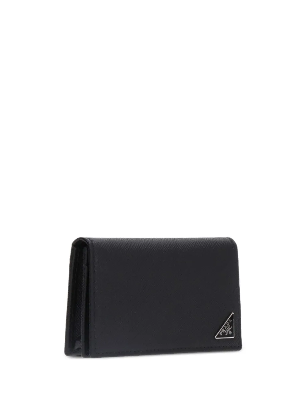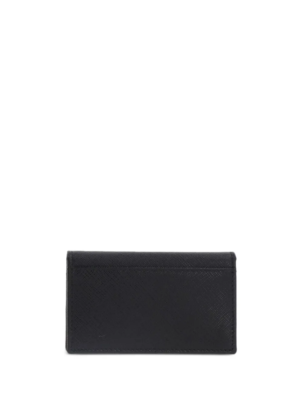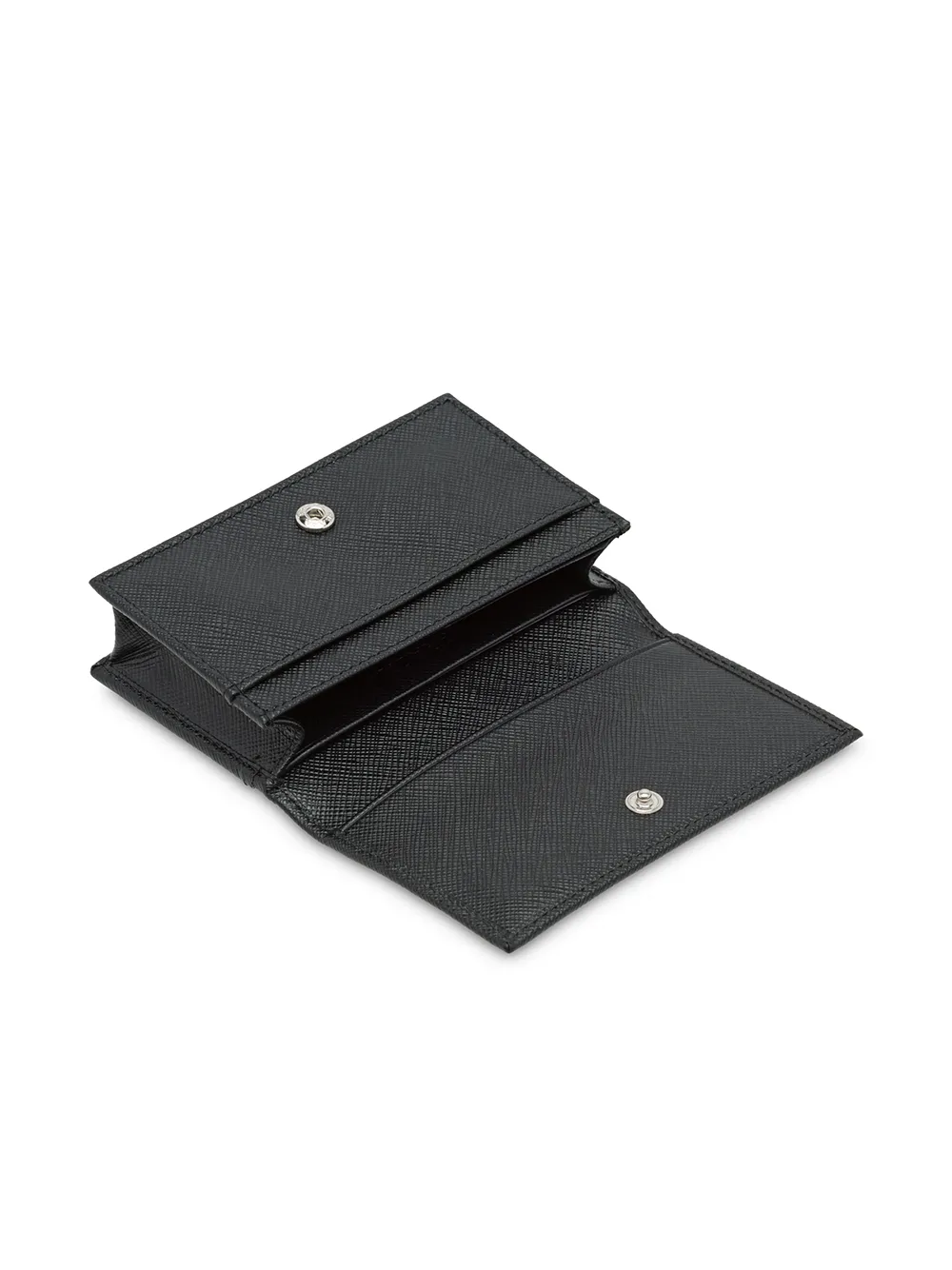 Футляр для карт из кожи Saffiano от Prada. Откидной верх с застежкой-защелкой, главный внутренний отдел и multiple interior card slots. Цвет: черный.