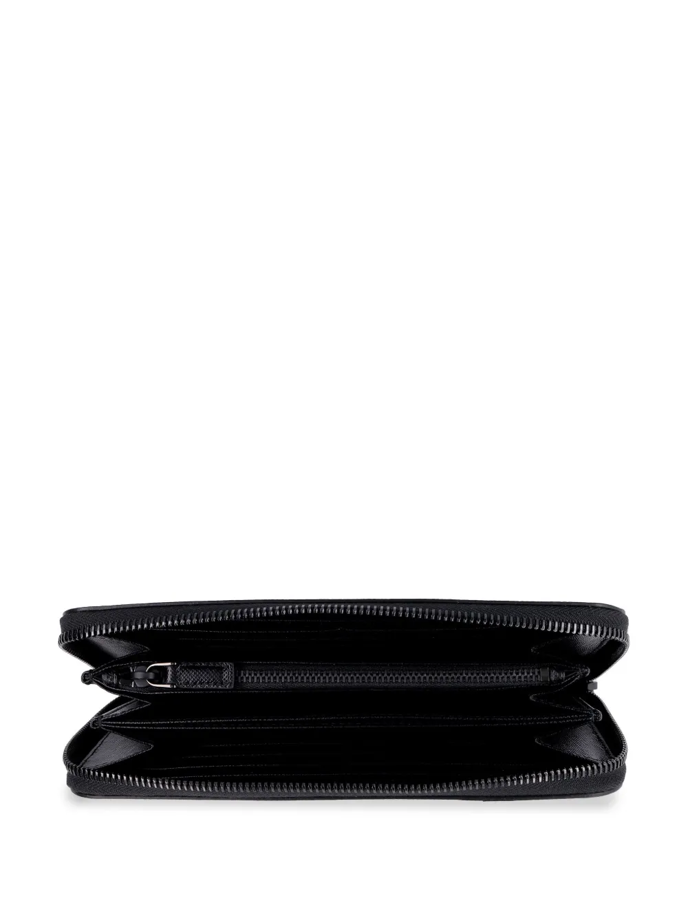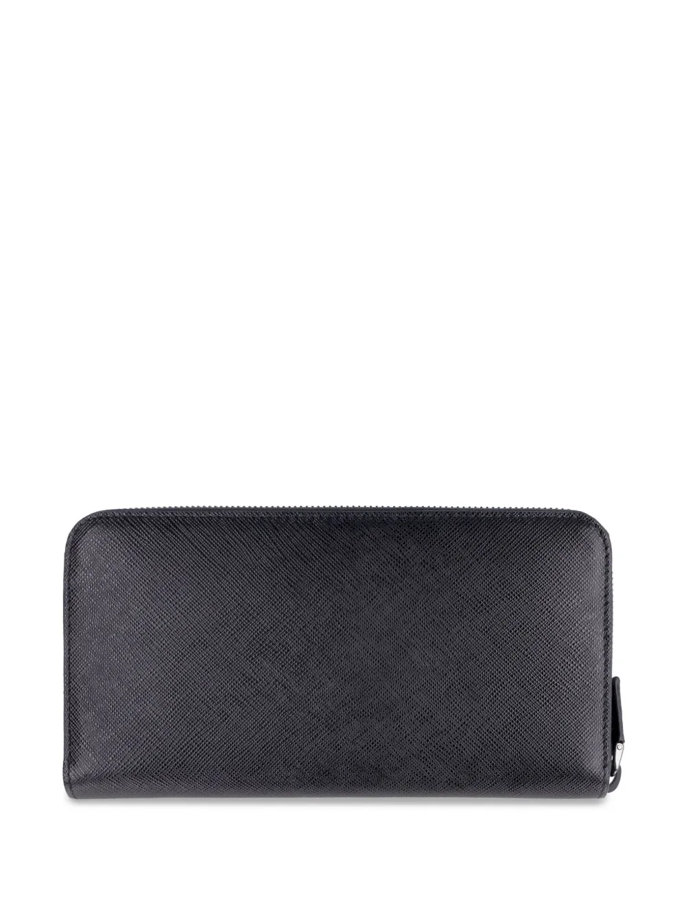 Кошелек из кожи Saffiano от Prada. Круговая молния, бляшка с логотипом спереди, несколько внутренних отделений, внутренний карман на молнии и multiple interior card slots. Цвет: черный.
