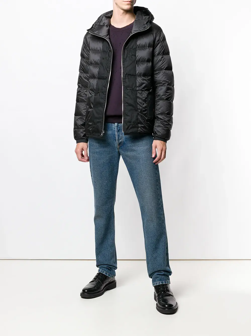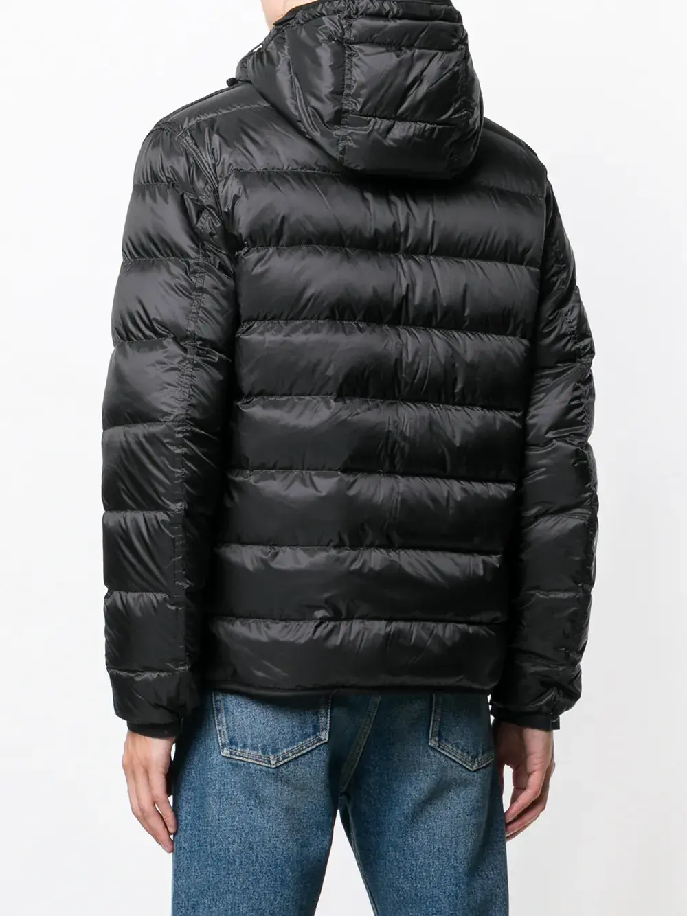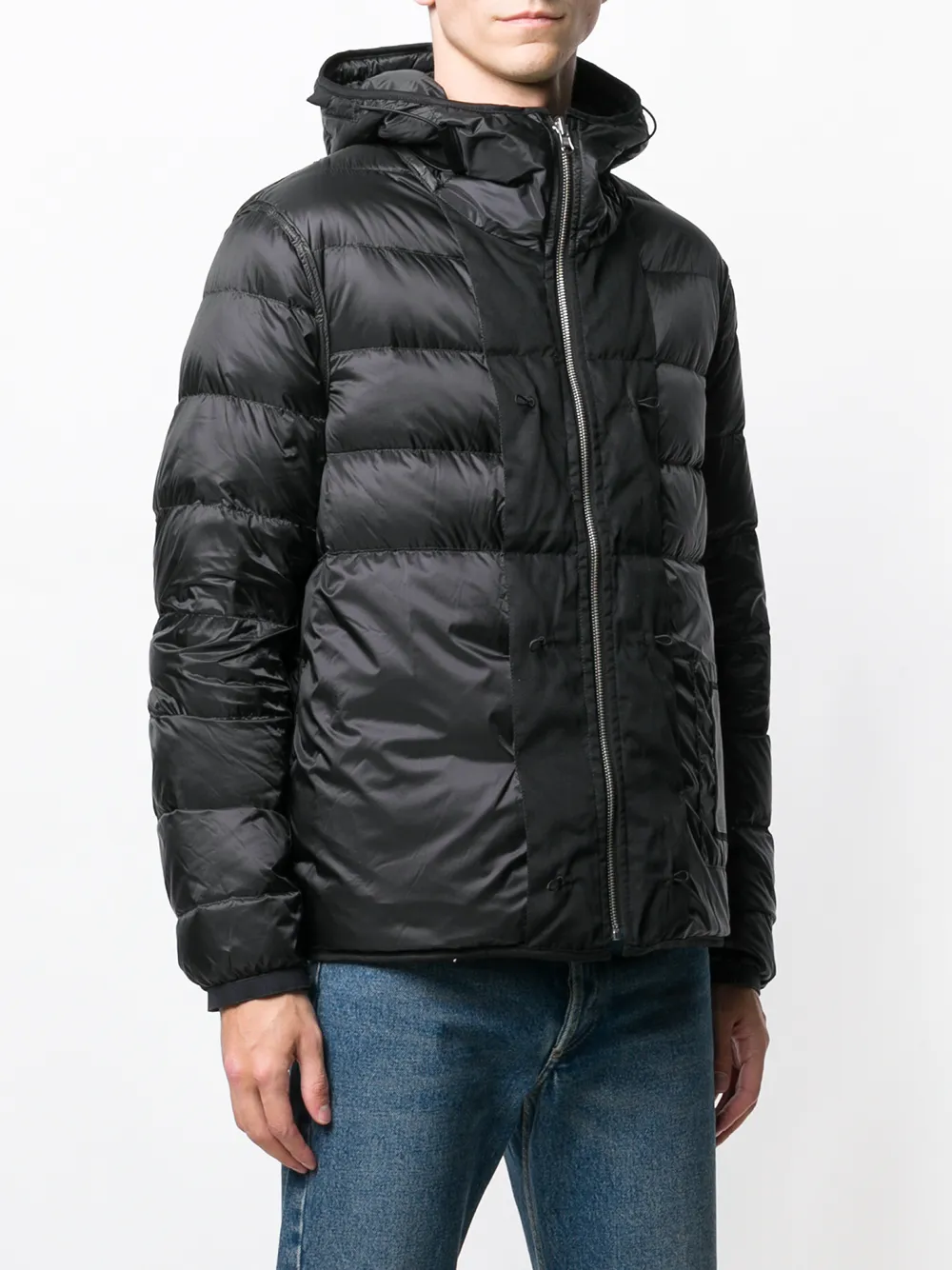Пуховик с капюшоном от Ten C. Застежка на молнии спереди и длинные рукава. Цвет: черный.