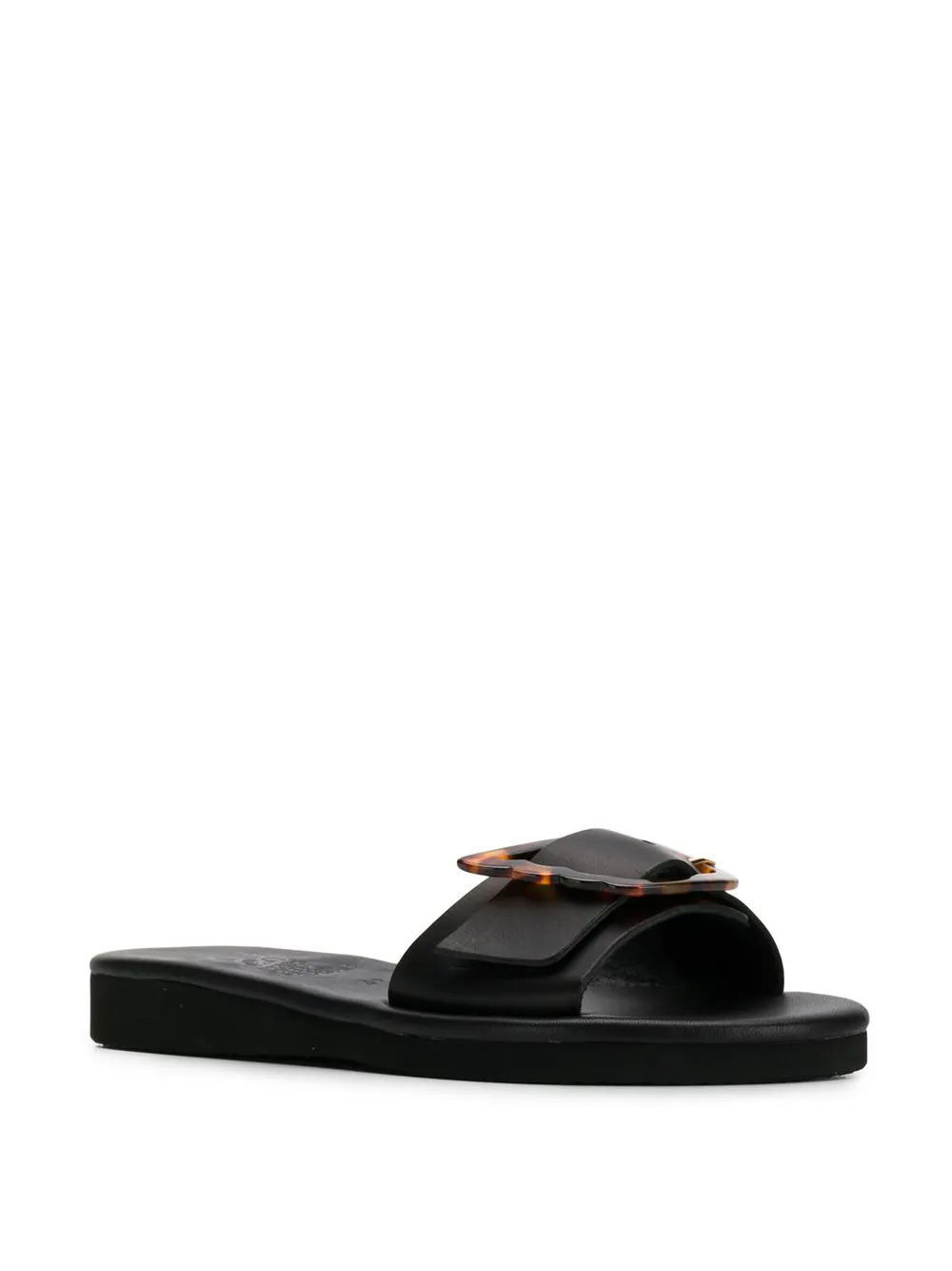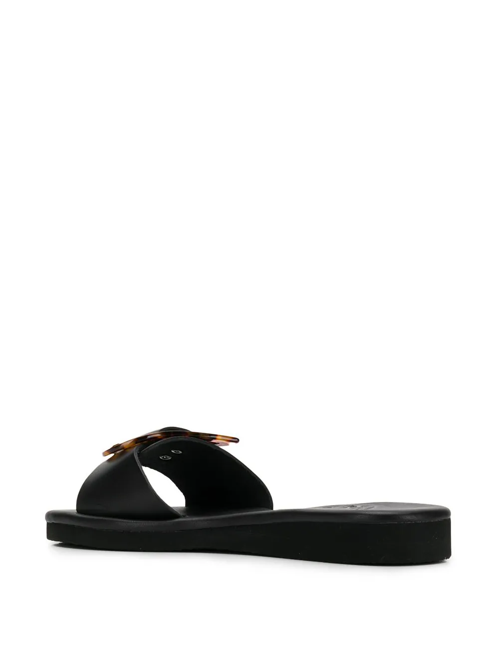 Сандалии 'Aglaia' от Ancient Greek Sandals. Открытый носок, фирменная стелька и плоская подошва. Цвет: черный. POSITIVELY CONSCIOUS: Мы объединились с агентством Good On You, которое составляет рейтинг ответственных брендов. Этот бренд получил отметку «Ответственный выбор», потому что отвечает ключевым стандартам агентства.