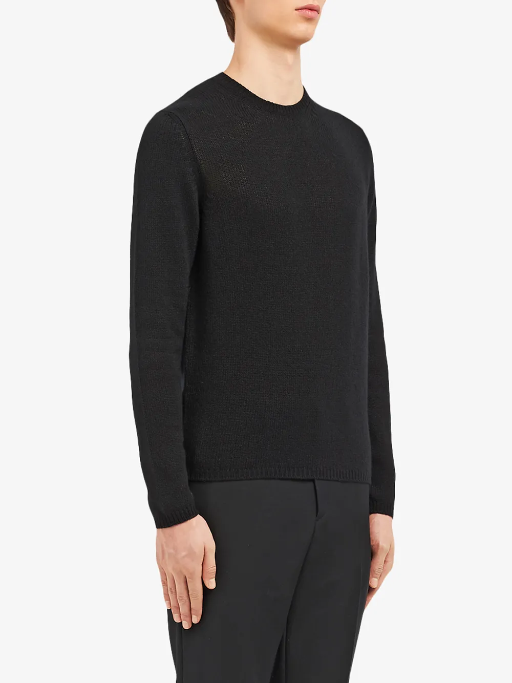 Кашемировый джемпер с круглым вырезом Prada, черный