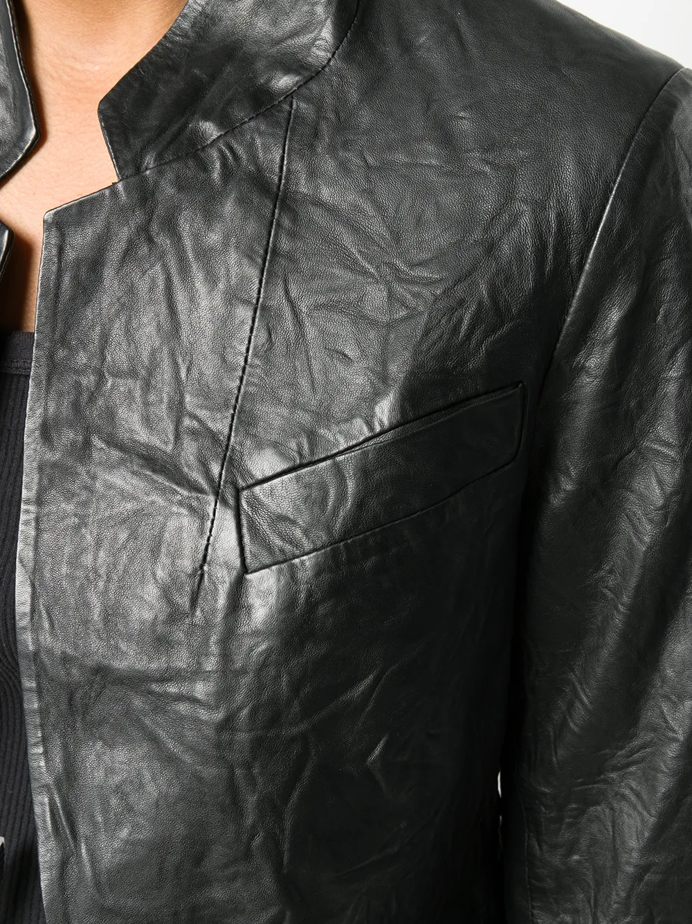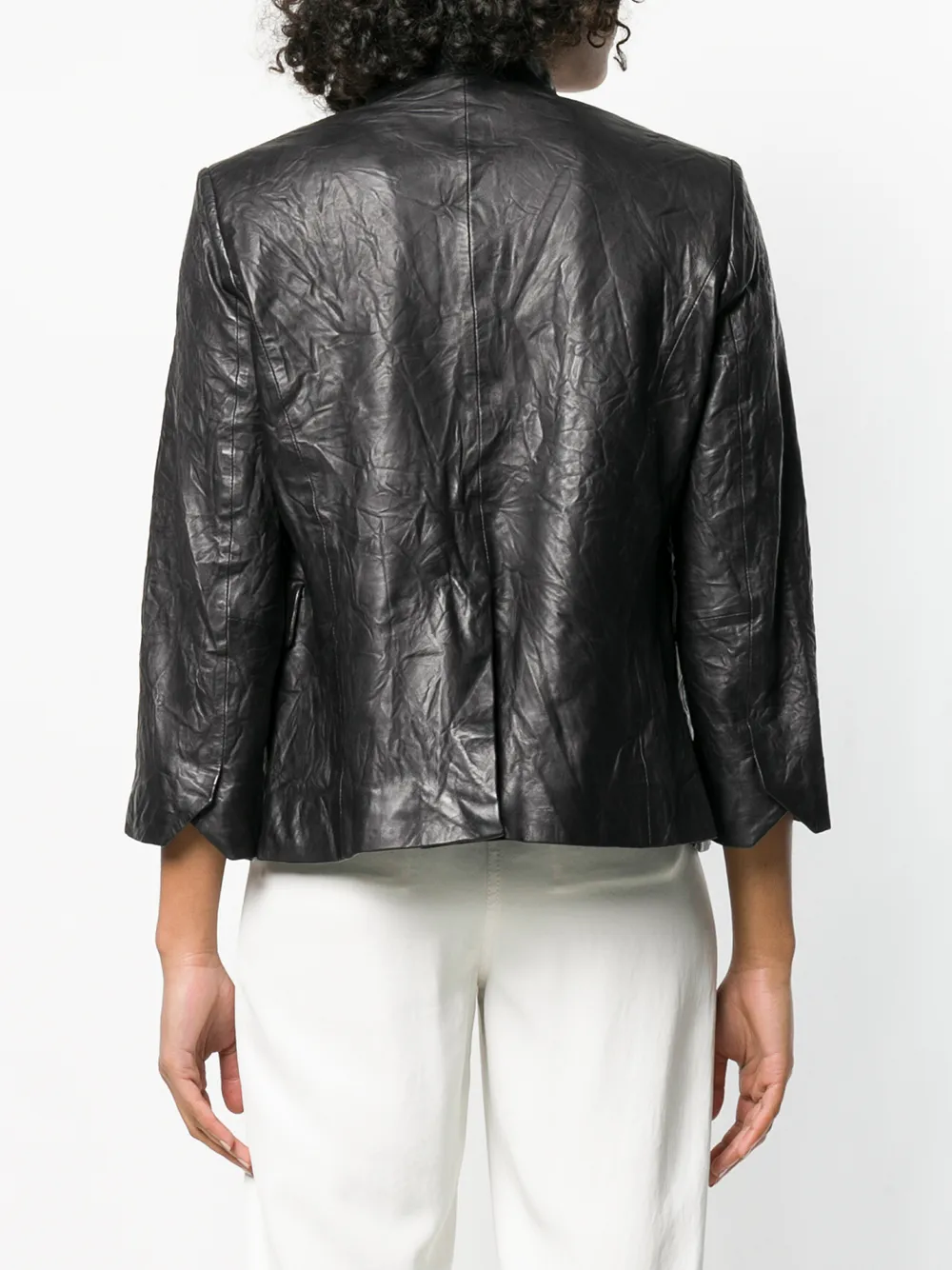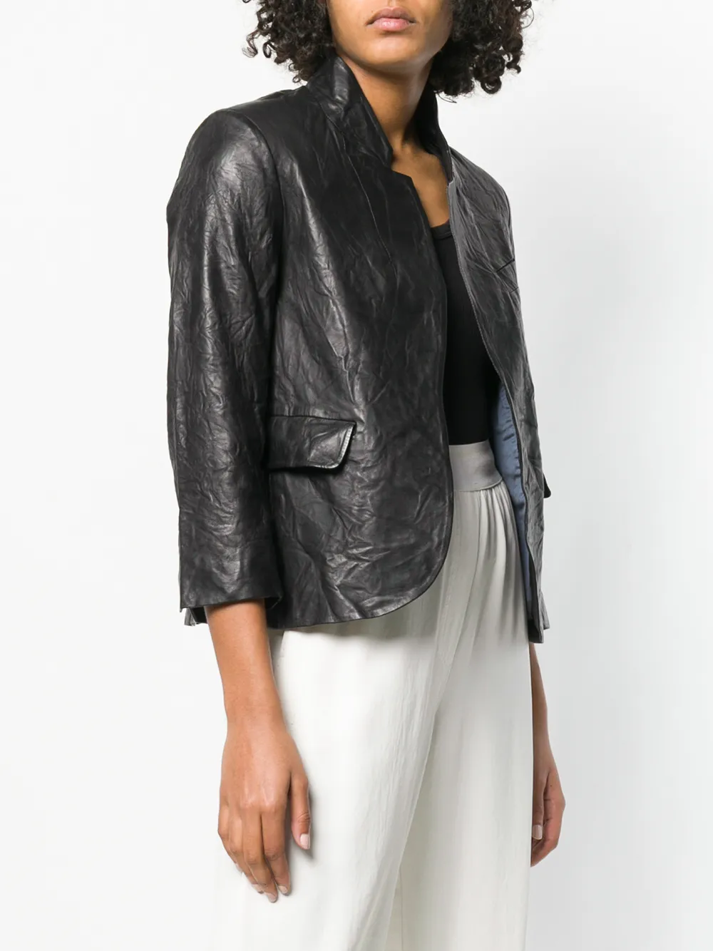 Куртка с эффектом помятости от Zadig & Voltaire. Стоячий воротник, открытый перед, передние карманы с клапанами, рукава три четверти и шлица сзади. Цвет: черный.