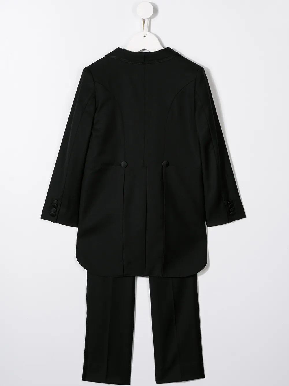 Костюм-тройка от Dolce & Gabbana Kids. Вырез-шалька, нагрудный карман, длинные рукава, манжеты на пуговицах, петли для ремня, застежка на пуговицах спереди и прямые брючины. Цвет: черный.
