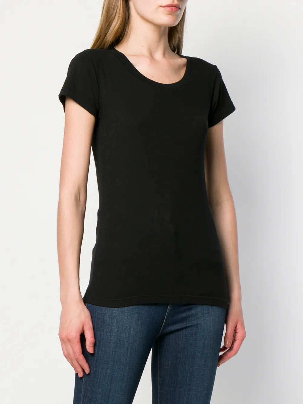 Футболка кроя слим от L'Agence. Круглый вырез, короткие рукава и узкий крой. Цвет: черный.