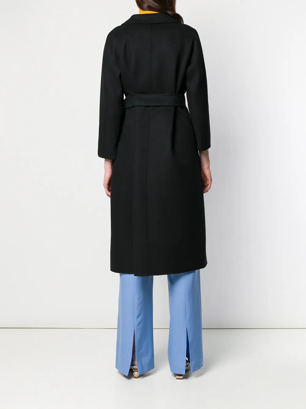 Пальто с поясом от 'S Max Mara. Широкие лацканы, силуэт, подчеркнутый поясом, длинные рукава, боковые карманы и свободный силуэт. Цвет: черный.