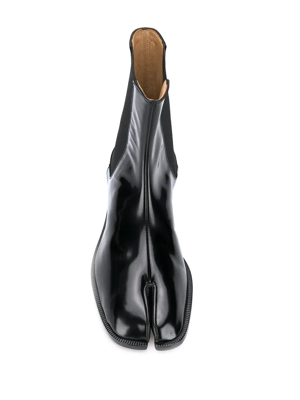 these riding style ankle boots sport a signature Maison Margiela Tabi toe. Featuring a tabi toe