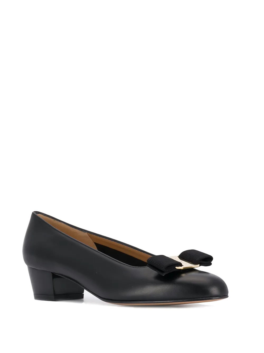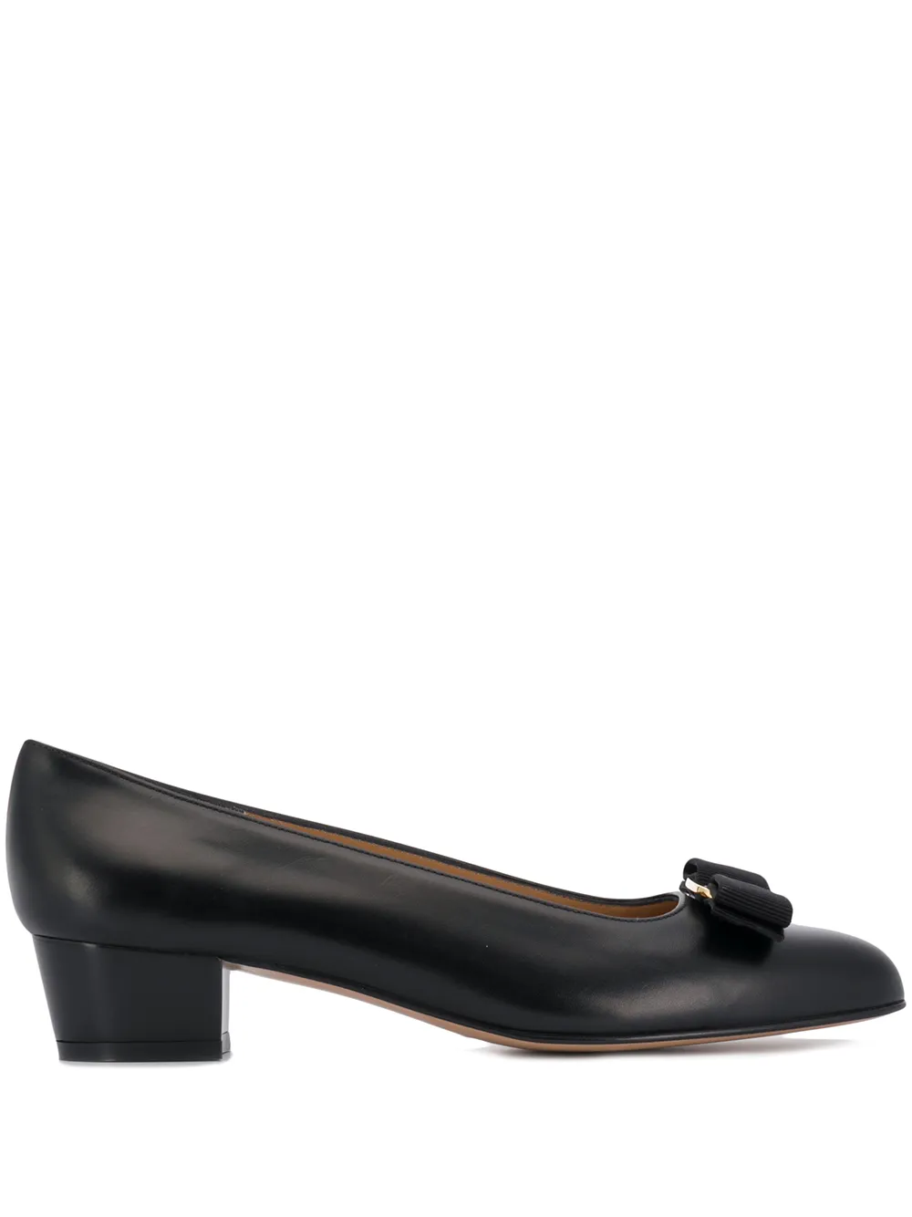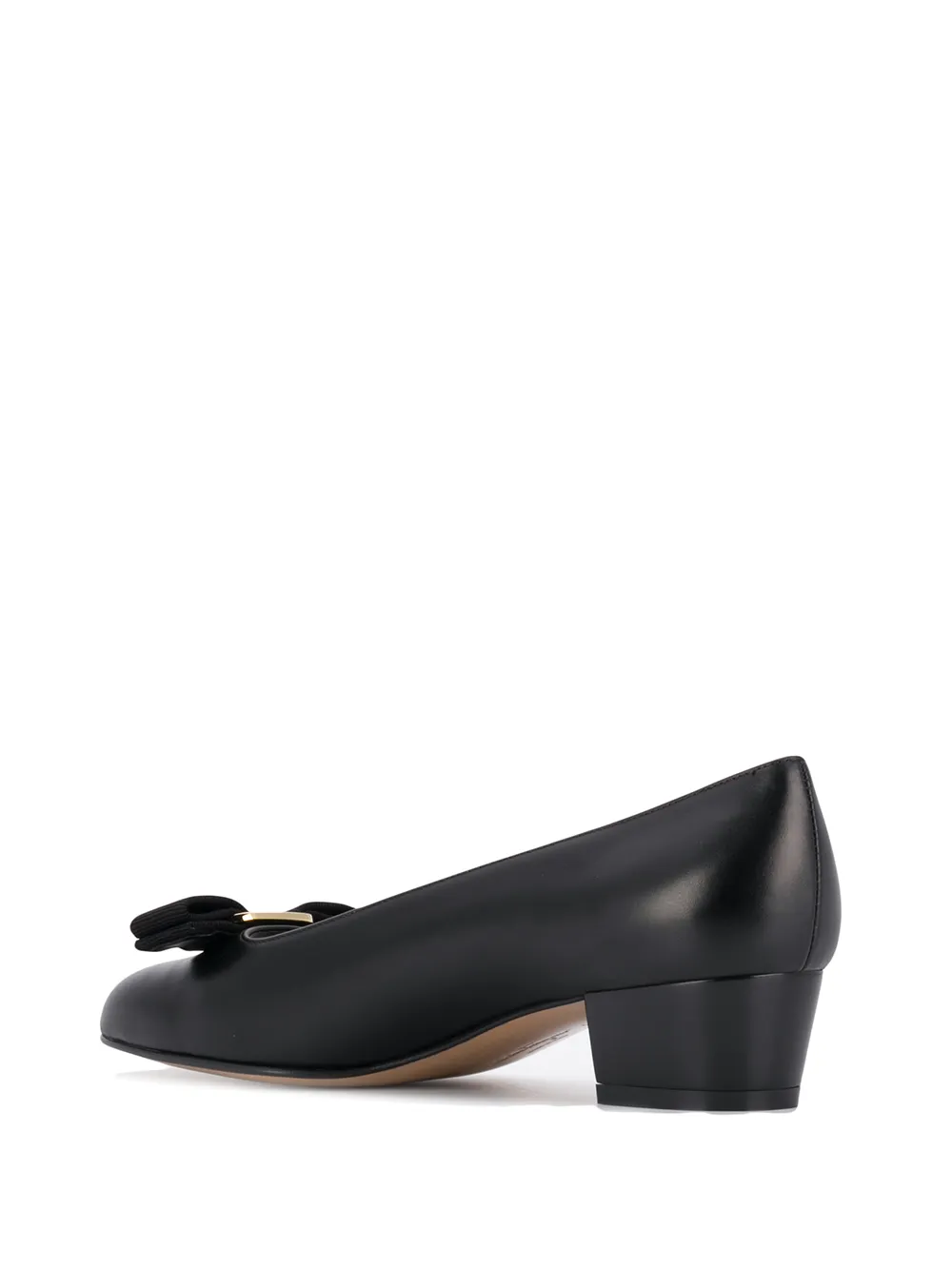 Балетки Vara от Salvatore Ferragamo (Сальваторе Феррагамо). Миндалевидный носок, бант, модель слип-он, без застежки, низкий наборный каблук и золотистая фурнитура. Цвет: черный.