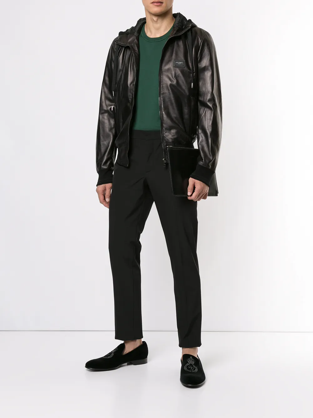 Доменико Дольче и Стефано Габбана знают все о классическом итальянском стиле. Культовые принты и красочные цветочные узоры украшают модели из коллекции Dolce & Gabbana, которые идеально подойдут к современному гардеробу. Среди них черная куртка из кожи ягненка с капюшоном от Dolce & Gabbana (Дольче энд Габбана). Капюшон, затягивающийся на шнурок, длинные рукава, подол и манжеты в рубчик, застежка на молнии спереди, нашивка с логотипом на груди.