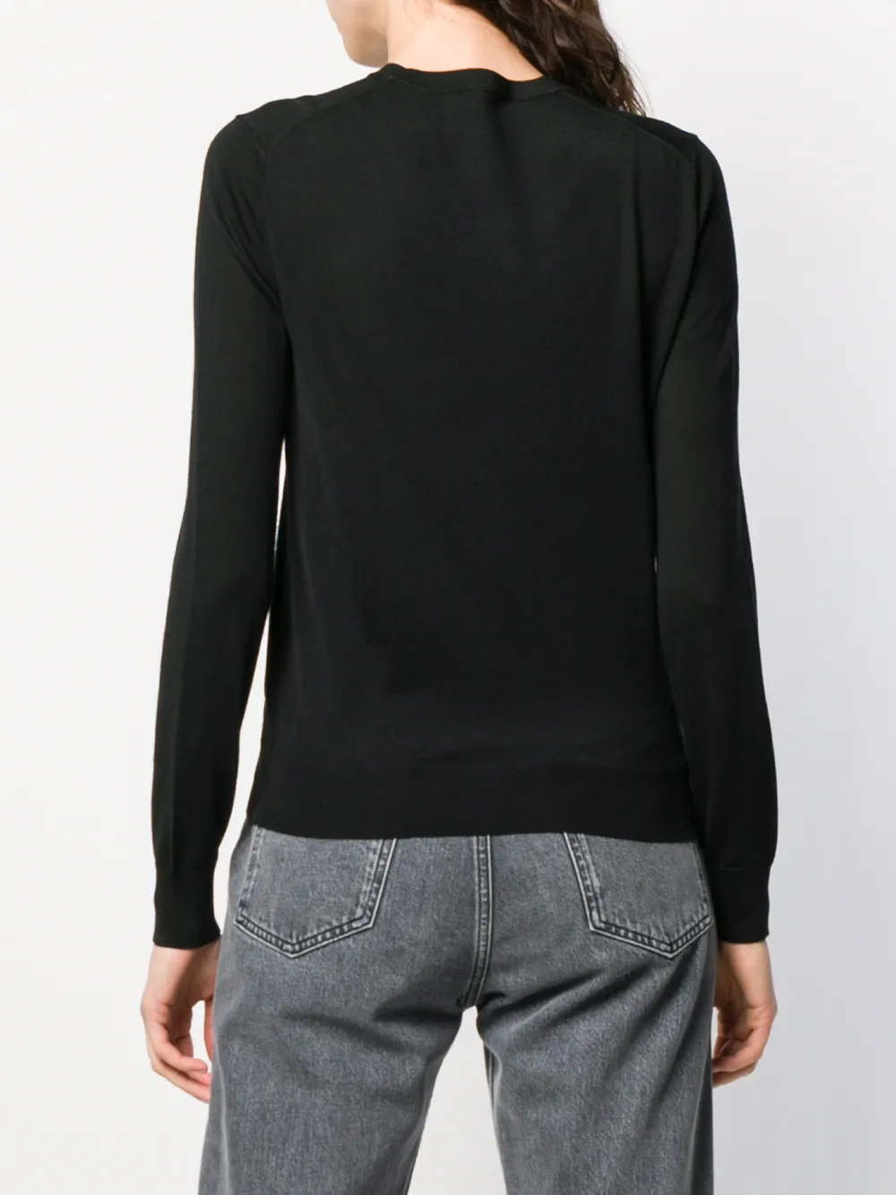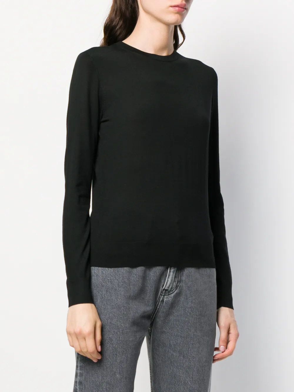 Пуловер с круглым вырезом от Theory. Круглый вырез под горло, длинные рукава, узкий крой и подол и манжеты в рубчик. Цвет: черный.