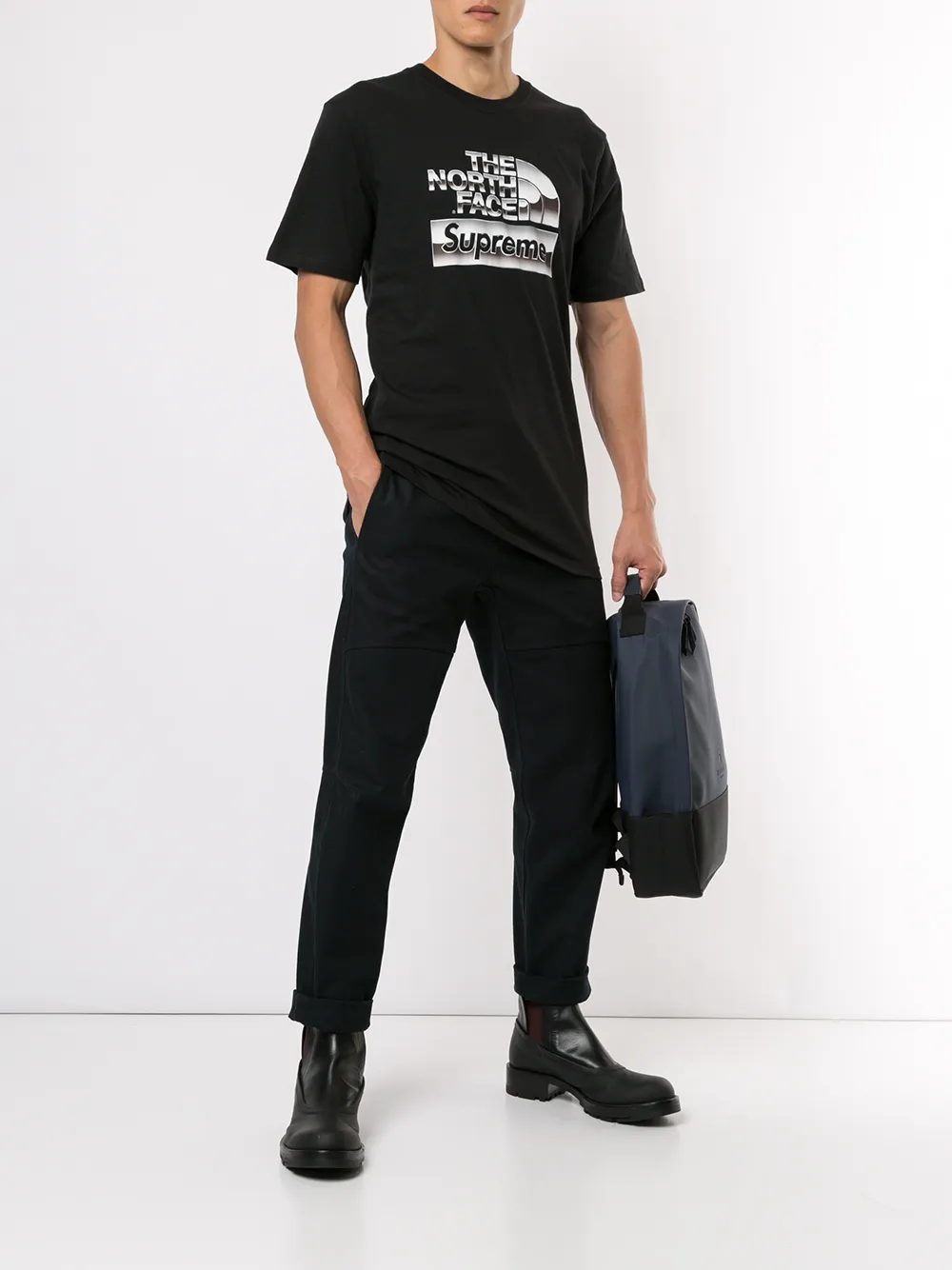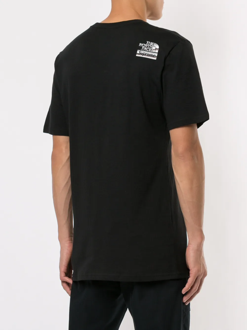 Футболка с логотипом от Supreme. Круглый вырез с окантовкой, принт спереди, свободный крой, короткие рукава и принт с логотипом сзади. Цвет: черный. Эта модель представлена на маркетплейсе, где можно найти самые редкие модели одежды и кроссовок, о которых мечтают коллекционеры и любители streetwear по всему миру.