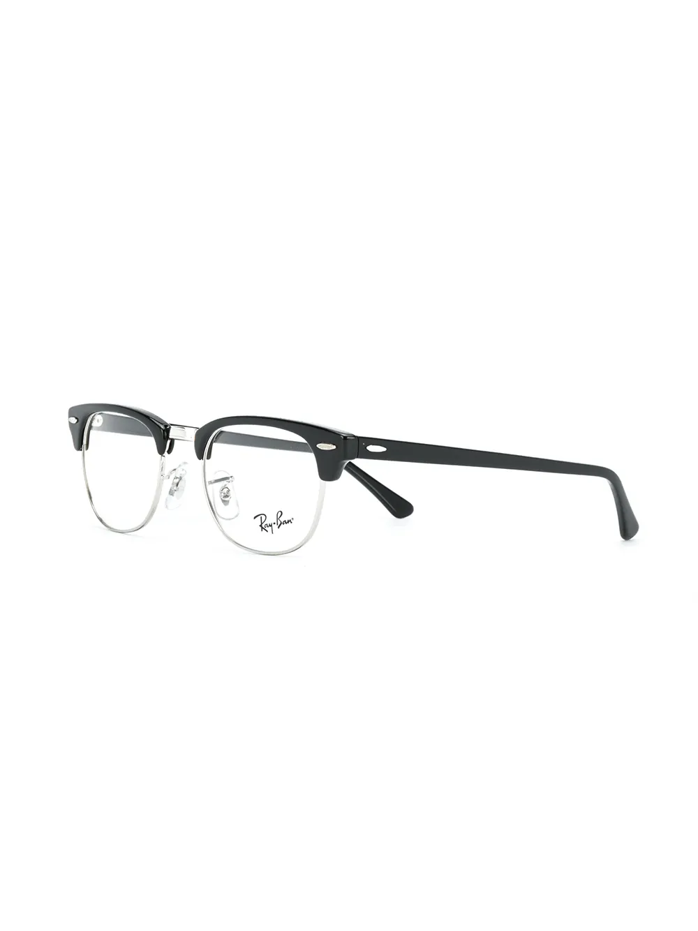 Очки в квадратной оправе от Ray Ban (Рэй Бан). Серебристая фурнитура и логотип бренда на внешней стороне дужки. Цвет: черный. Прилагается защитный чехол.