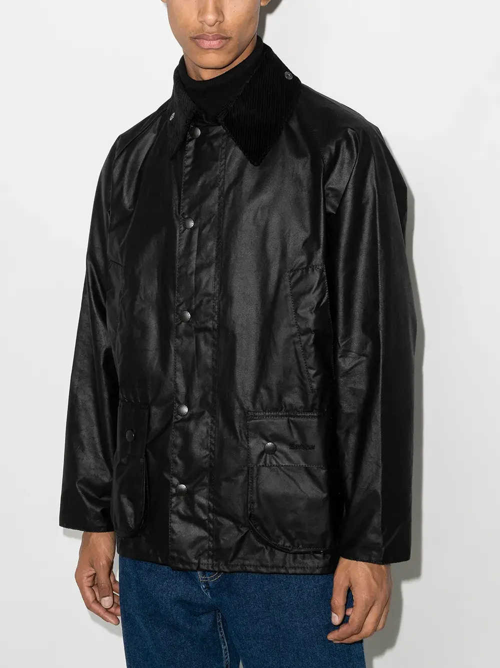 Британский бренд Barbour был основан в 1984 году Джоном Барбором и прославился благодаря водонепроницаемым курткам. Практичность и функциональность до сих пор лежат в основе образов Barbour. В новый сезон вошла черная вощеная куртка Bedale из 100% хлопка от Barbour. Отделка веревкой, круглый вырез, застежка на пуговицах поверх молнии, длинные рукава, карманы с клапанами и отделка воском.