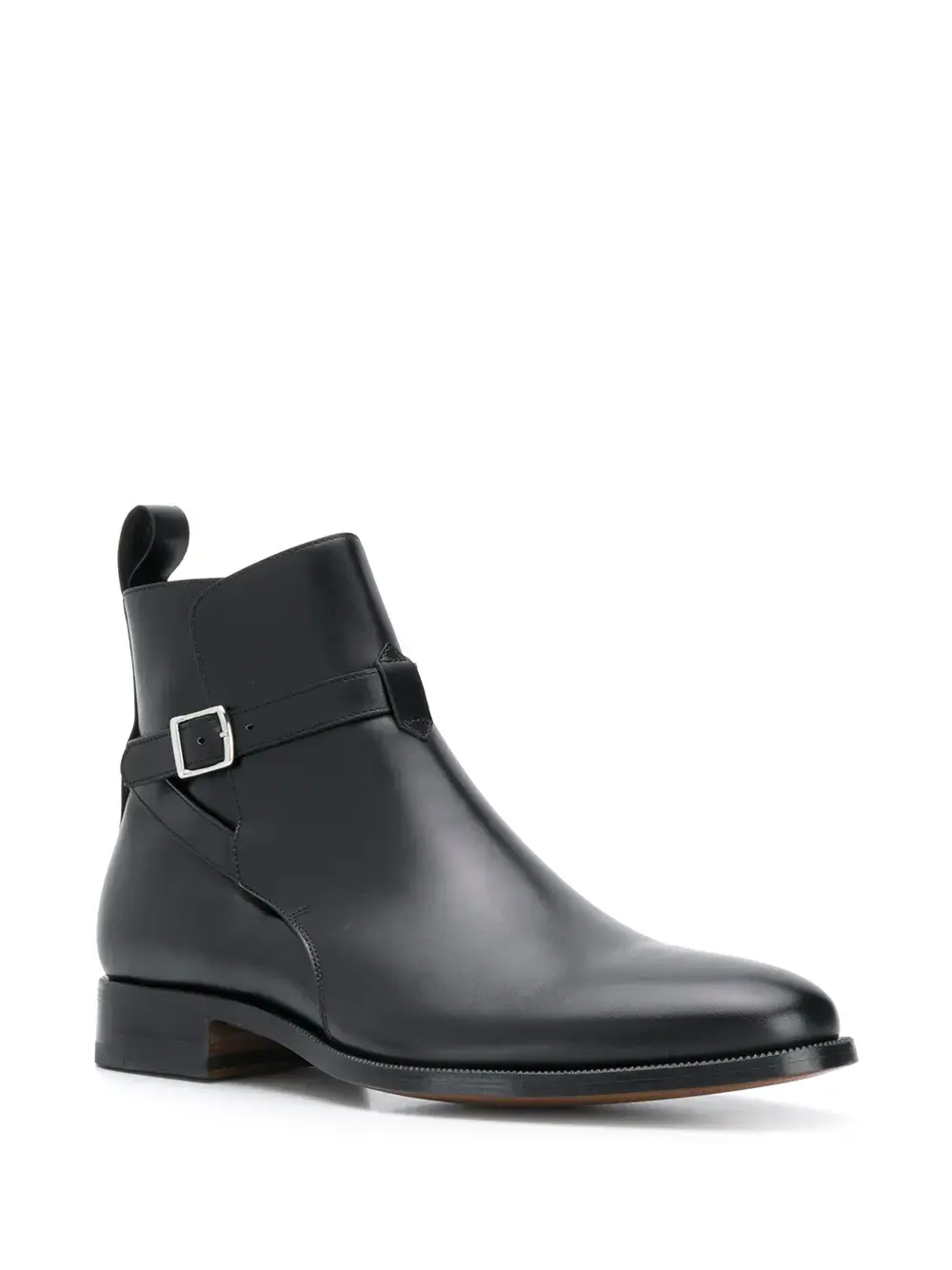 Ботинки с пряжкой от Scarosso. Миндалевидный носок, низкий наборный каблук, длина по щиколотку, серебристая фурнитура и петля для подтягивания сзади. Цвет: черный.