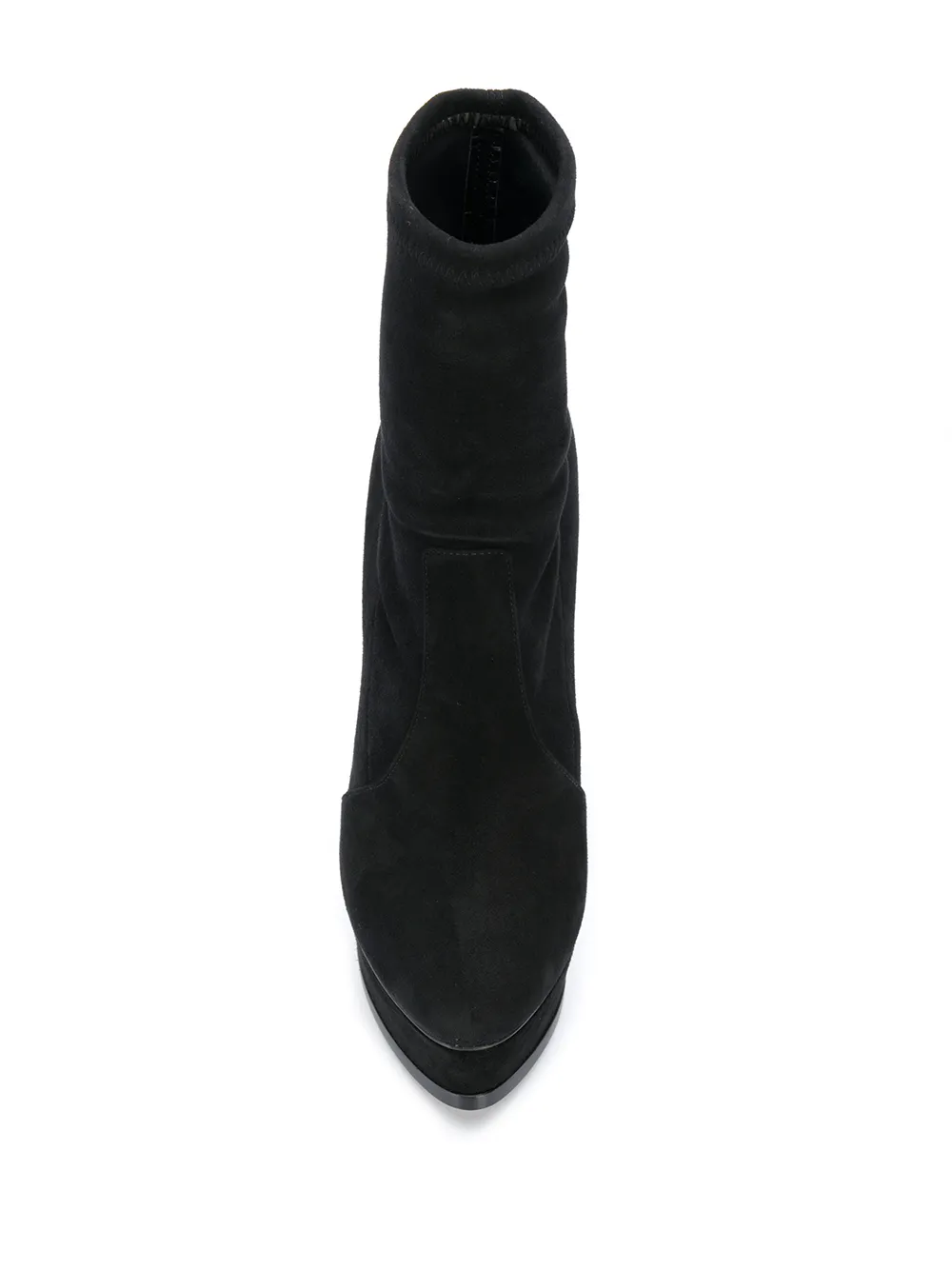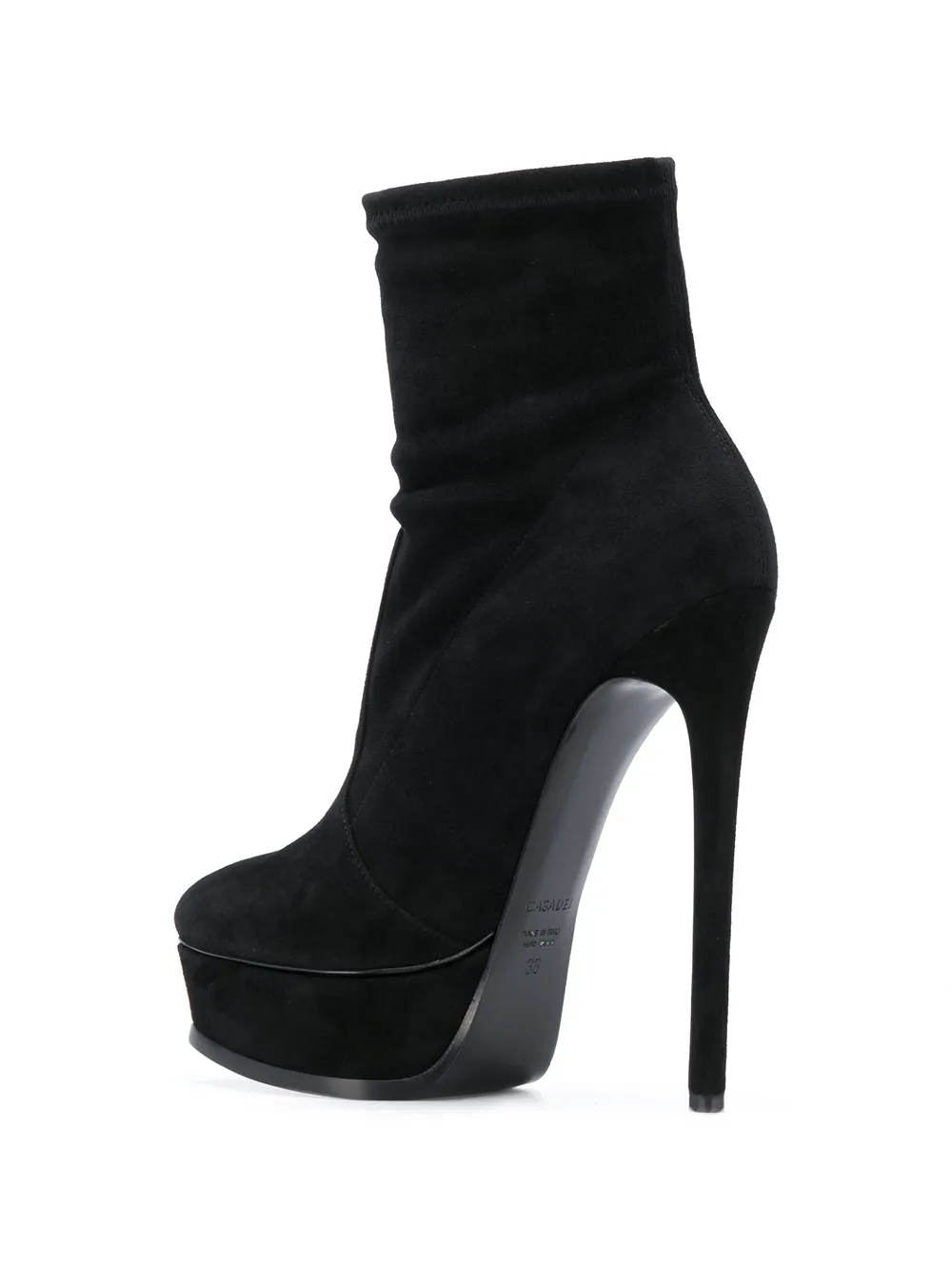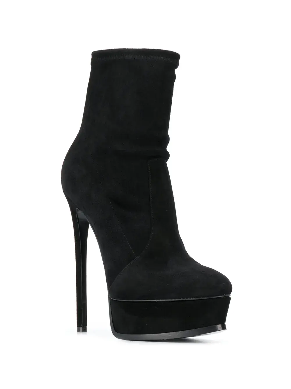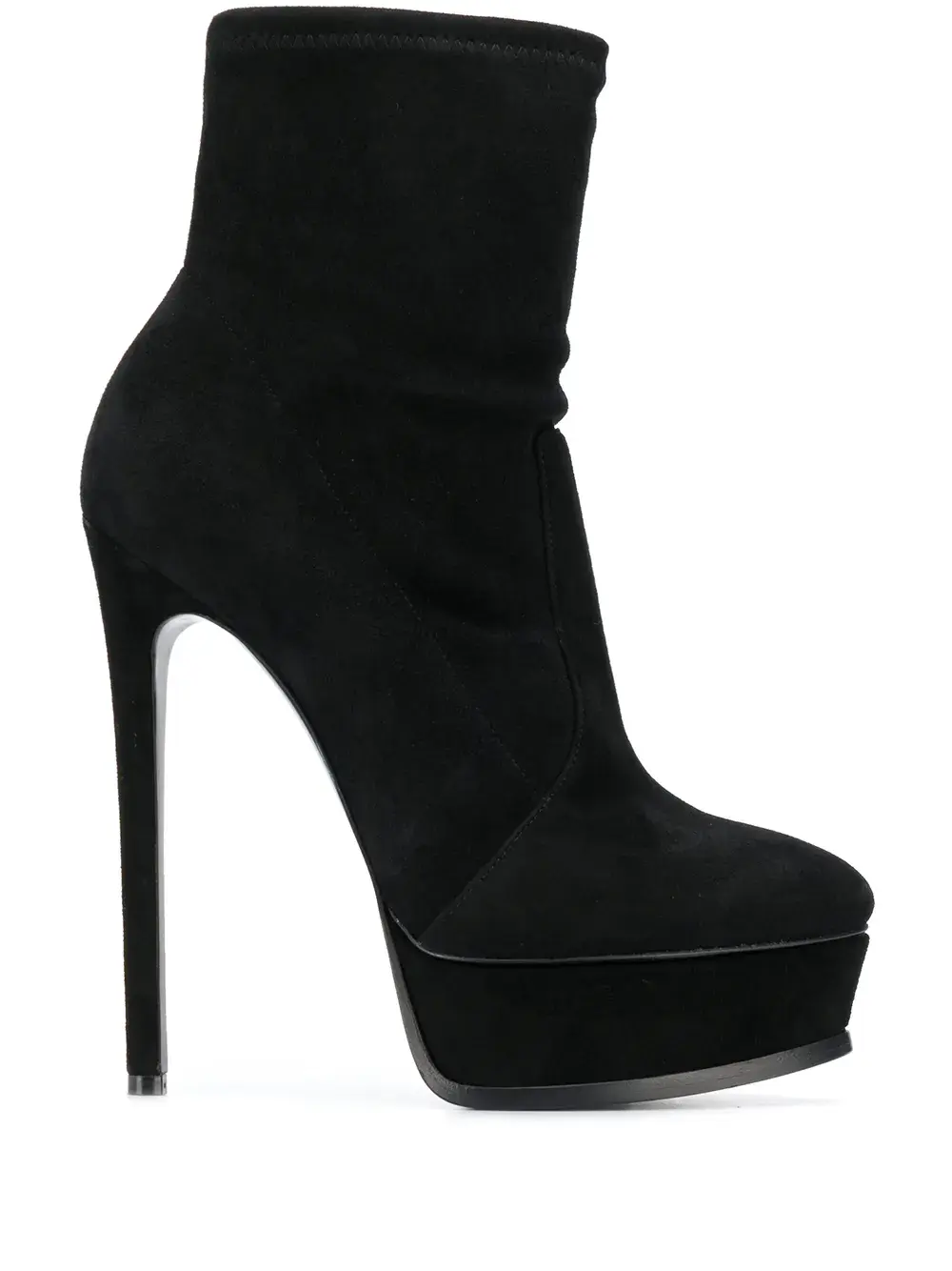 Ботильоны на платформе от Casadei (Касадей). Заостренный носок, модель без застежки, подошва на платформе и высокая шпилька. Цвет: черный.