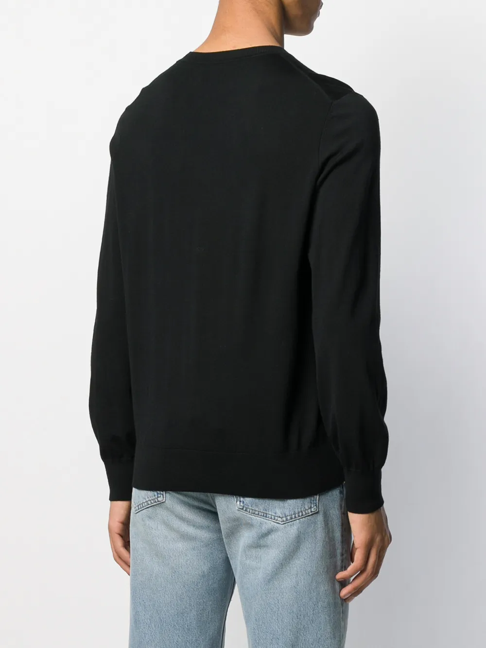 Трикотажный джемпер от Theory. Круглая горловина в рубчик, длинные рукава, вязаная модель и подол и манжеты в рубчик. Цвет: черный.
