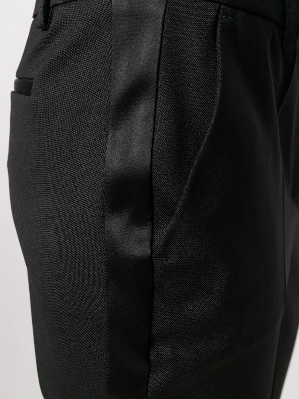 Укороченные брюки кроя слим от P.A.R.O.S.H.. Средняя посадка, пояс с петлями для ремня, потайная застежка спереди, прорезные карманы по бокам, задние карманы с листочкой и полоски сбоку. Цвет: черный.