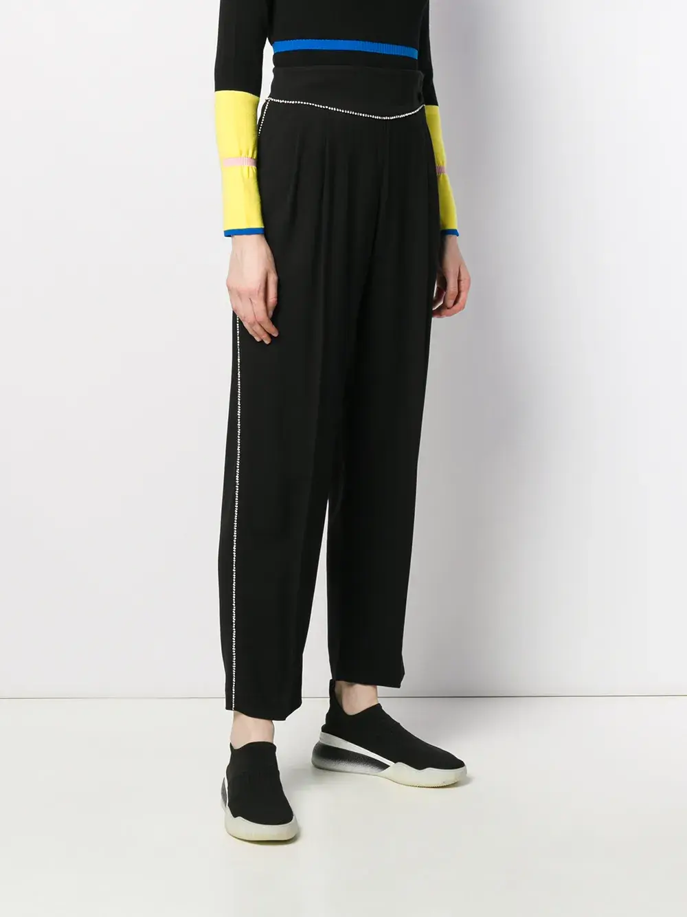Брюки с кристаллами от MSGM. Завышенная талия, застежка на крючке спереди, прямые брючины, стандартная длина и украшение из кристаллов. Цвет: черный.