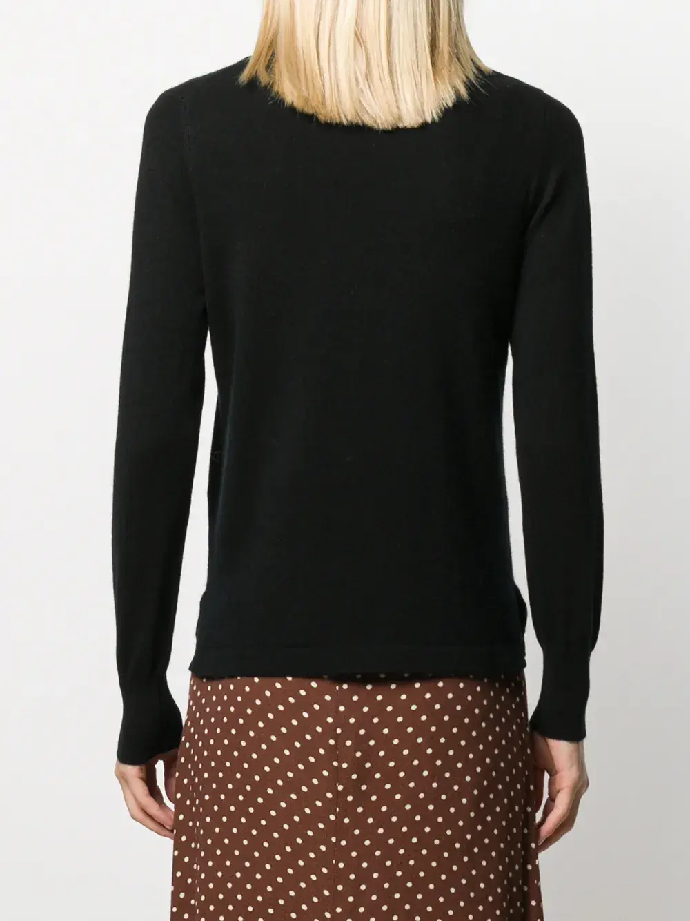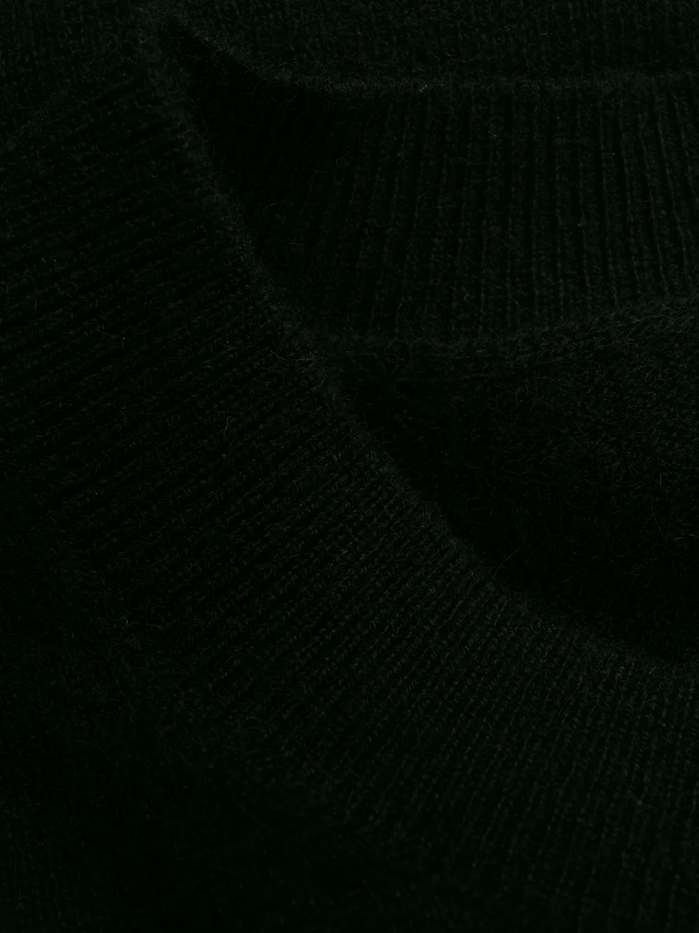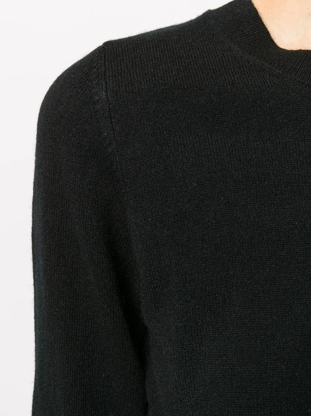 Черный, кашемир, трикотажный материал, круглый вырез, приспущенные плечи, длинные рукава и прямой подол.