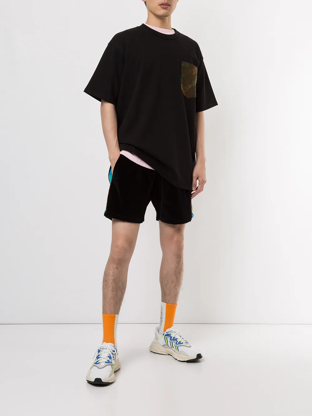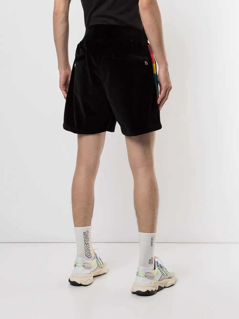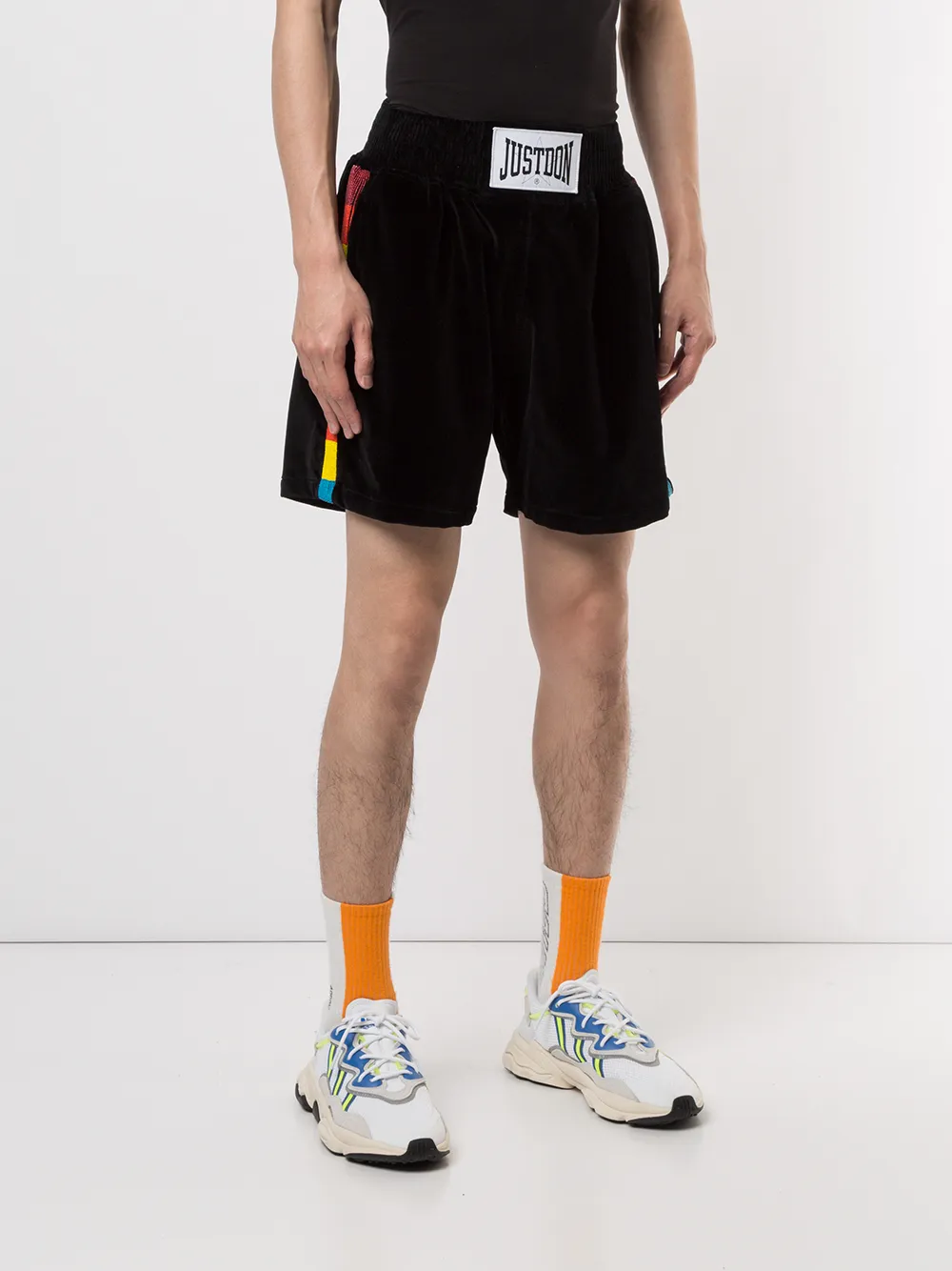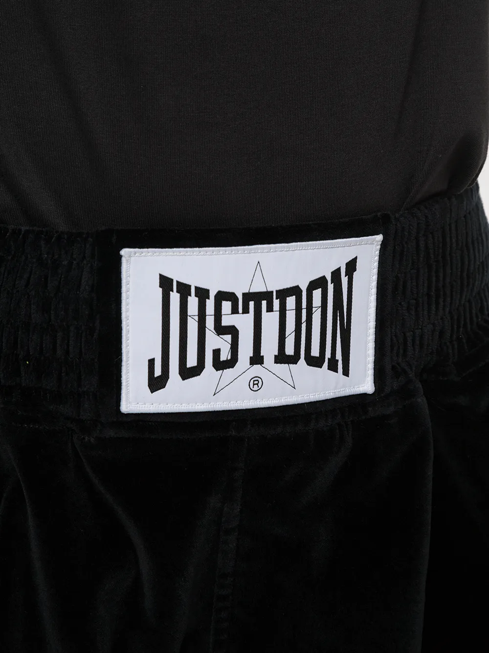 Бархатные шорты от Just Don. Эластичный пояс, заплатка с логотипом спереди, полоски сбоку, боковые карманы и задние карманы. Цвет: черный.