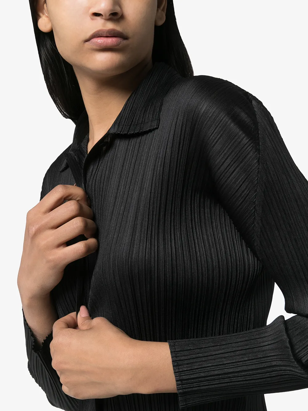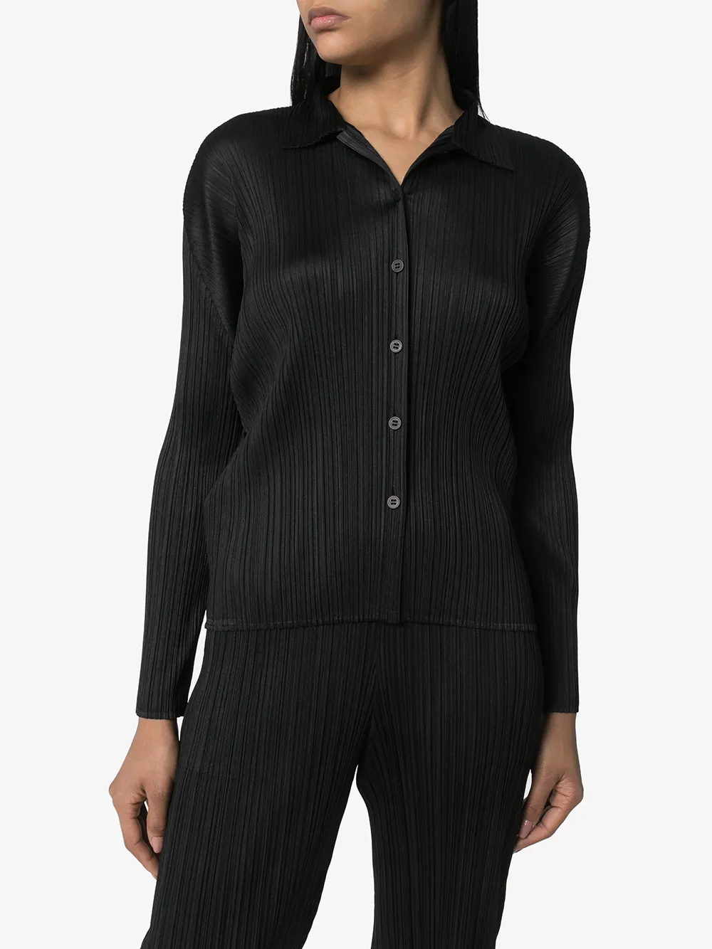 Плиссированная рубашка от Pleats Please Issey Miyake. Застежка на пуговицы и манжеты на пуговицах. Цвет: черный.