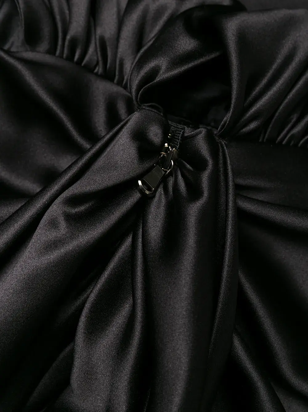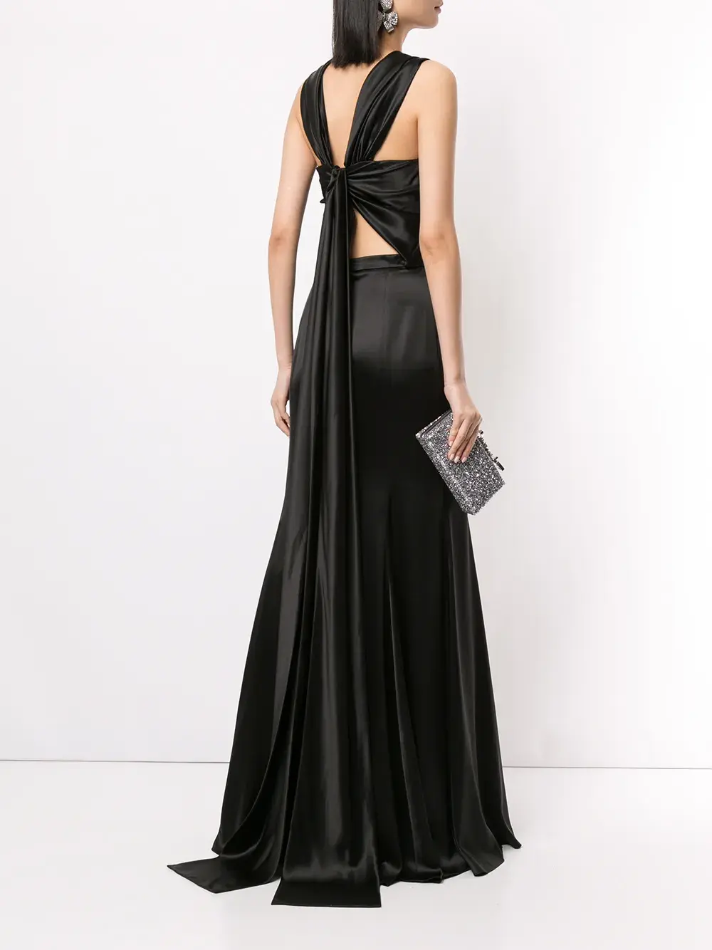 Для особого вечера нужно особое платье! Создать запоминающийся образ поможет вечернее платье черного цвета из коллекции Dolce & Gabbana (Дольче энд Габбана). Модель выполнена из смесового шелка, дополнена драпировкой, имеет потайную застежку на молнии, вырез и завязки на спине.