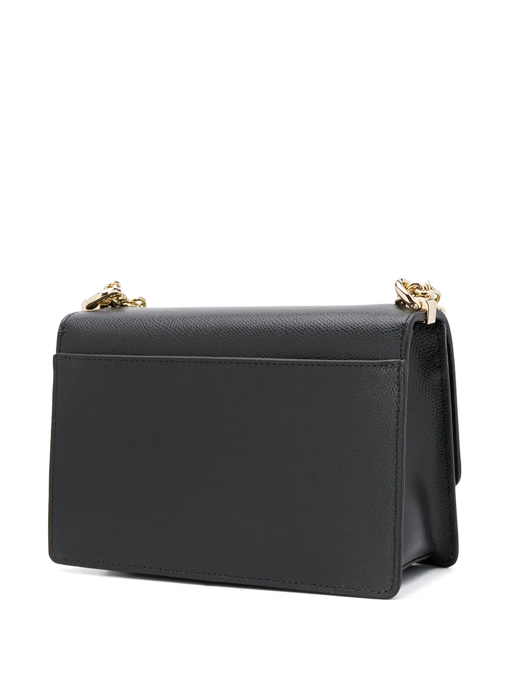 Сумка через плечо с монограммой от Furla (Фурла). Кожаный ремень на цепочке, клапан с портфельной застежкой, главный внутренний отдел, внутренняя вставка с логотипом, зернистая фактура кожи и структурированный дизайн. Цвет: черный.
