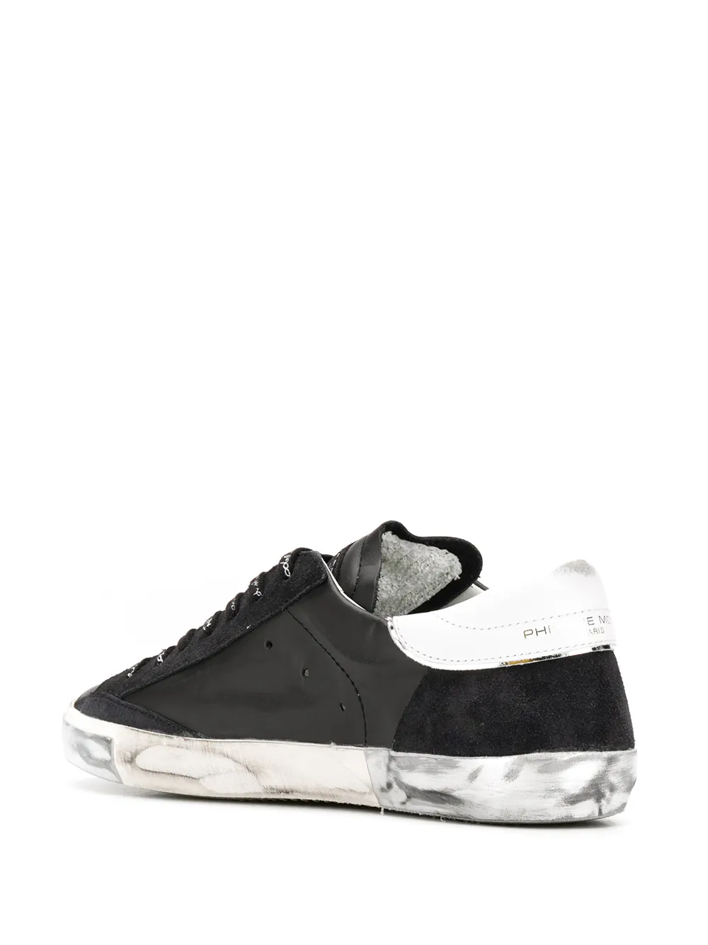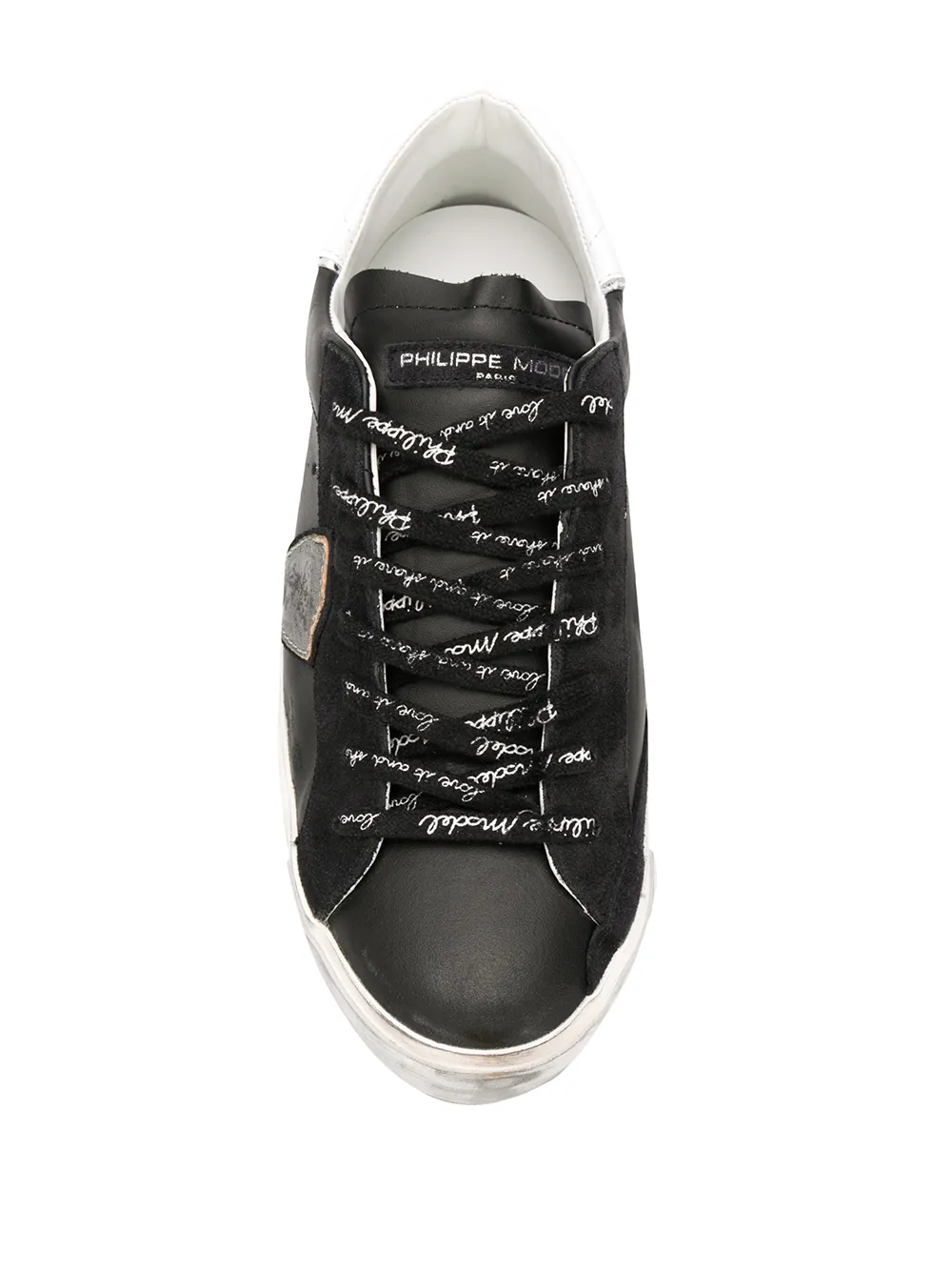 Кеды с эффектом потертости от Philippe Model. Эффект потертости, закругленный носок, застежка на шнуровке и белая резиновая подошва.