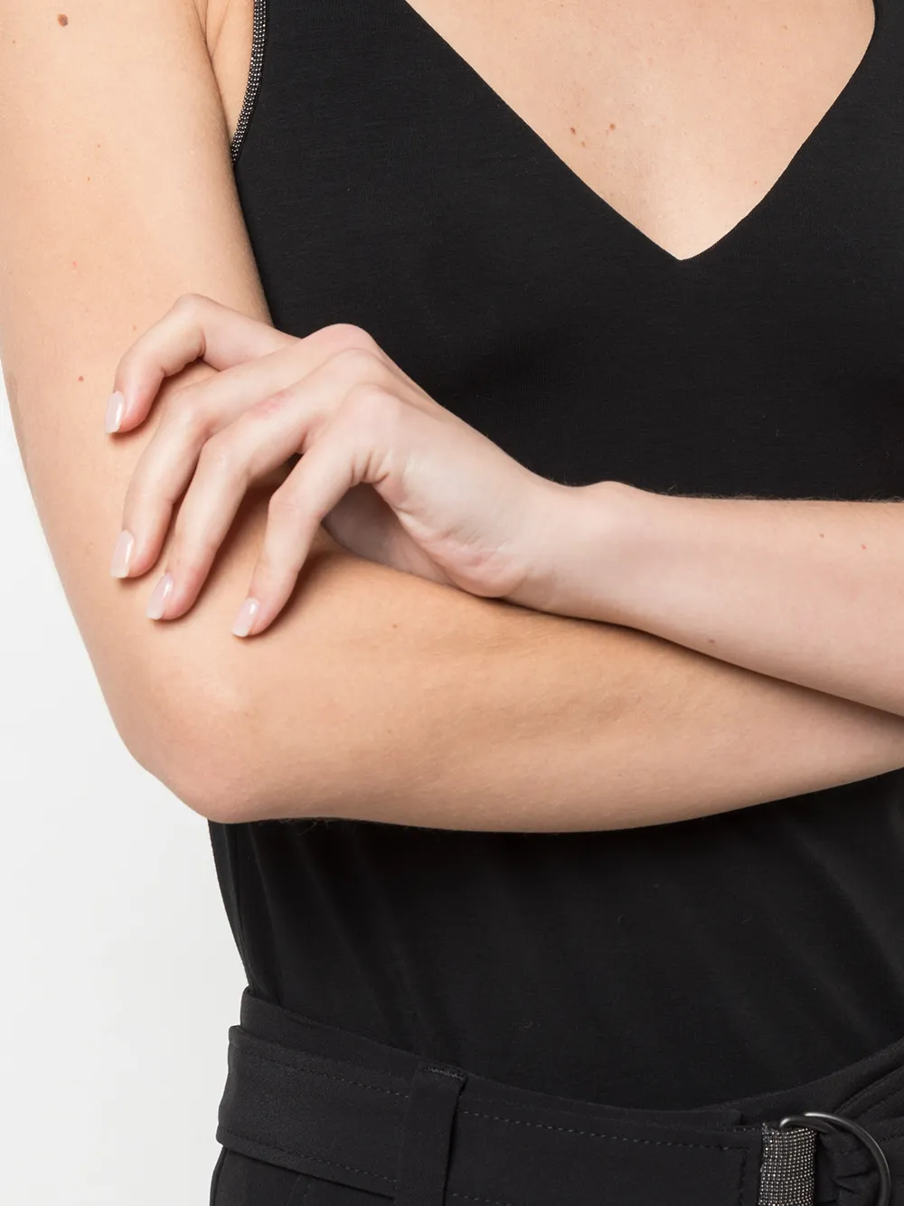 Топ кроя слим без рукавов от Brunello Cucinelli (Брунелло Кучинелли). V-образная горловина, лямка на плечо и узкий крой. Цвет: черный.