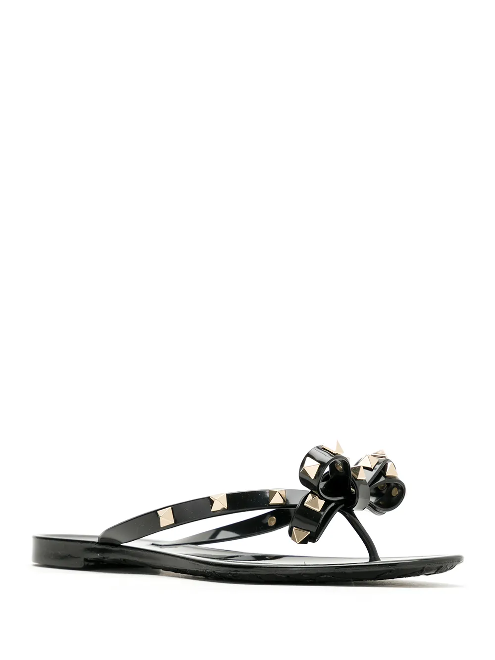 Босоножки Rockstud от Valentino Garavani. Бант, золотистая отделка Rockstud, фирменная стелька, плоская резиновая подошва и Т-образный ремешок. Цвет: черный.