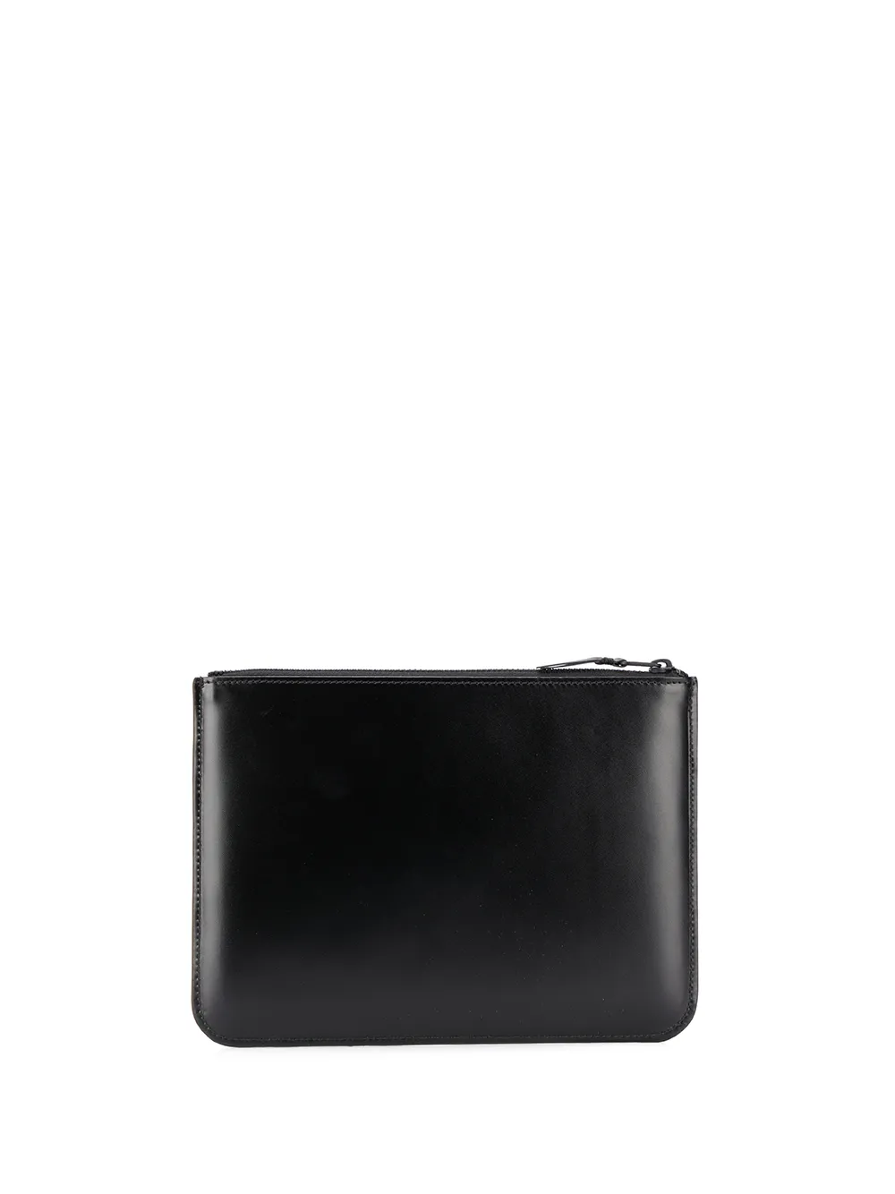 Кошелек с тисненым логотипом от Comme des Garçons Wallets. Серебристая фурнитура, застежка на молнии сверху и главный внутренний отдел.
