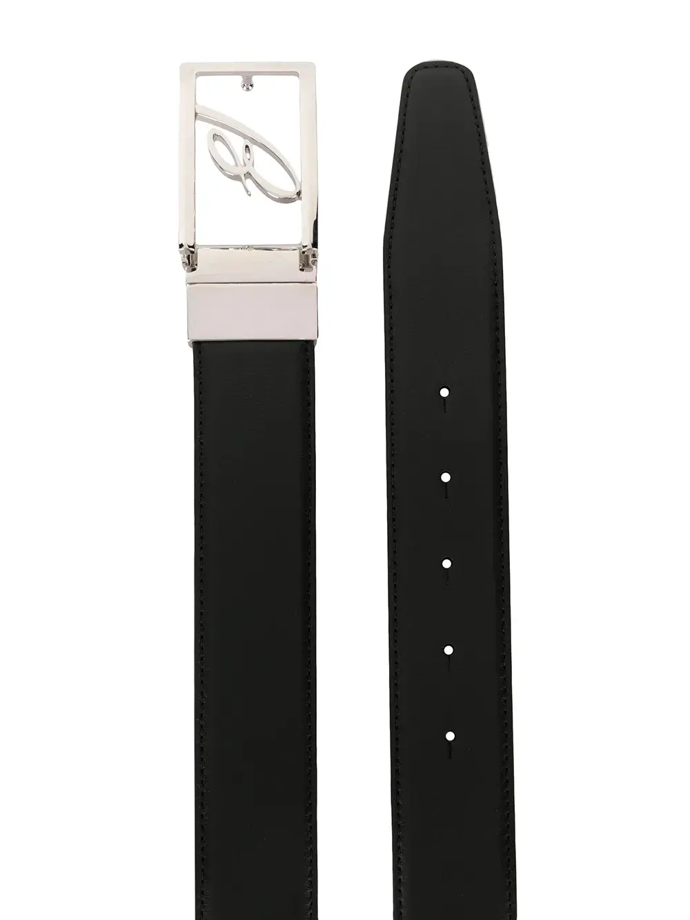 Ремень с логотипом от Brioni (Бриони). Застежка с пряжкой спереди, серебристая фурнитура и двухстороннее изделие.