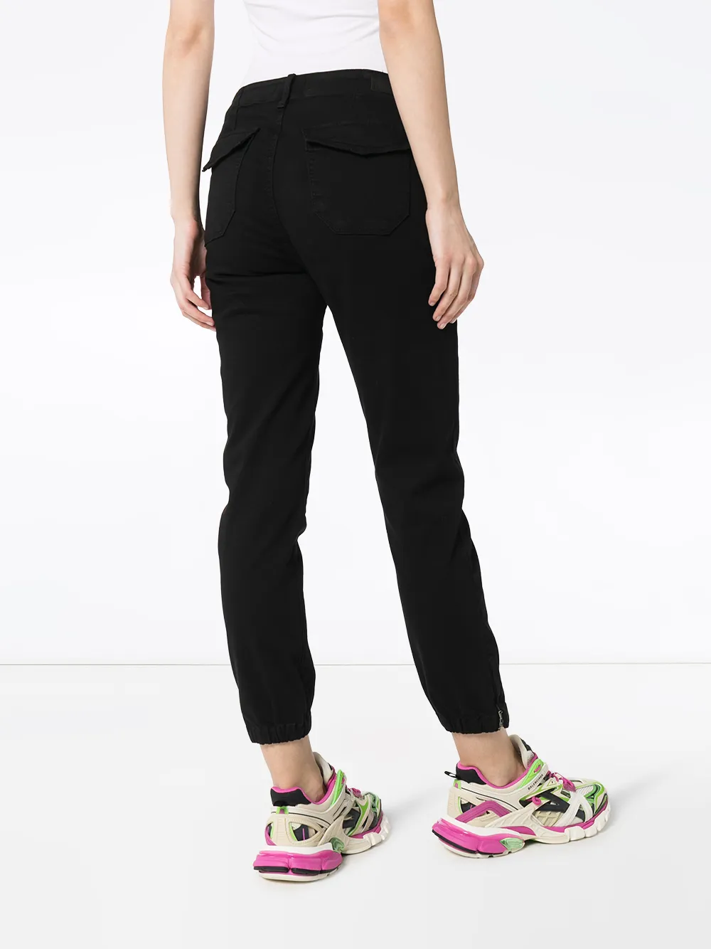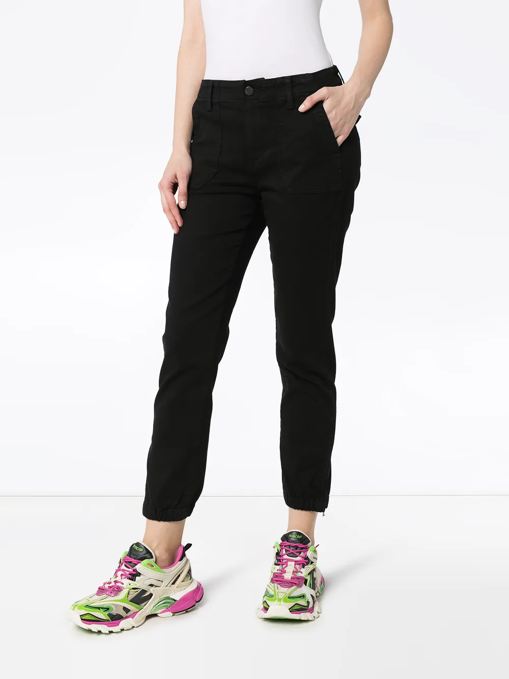 Брюки карго Mayslie из денима от Paige. Средняя посадка, петли для ремня, потайная застежка спереди, прорезные карманы по бокам, карманы с клапанами сзади, прямые брючины и обрезанная длина. Цвет: черный.
