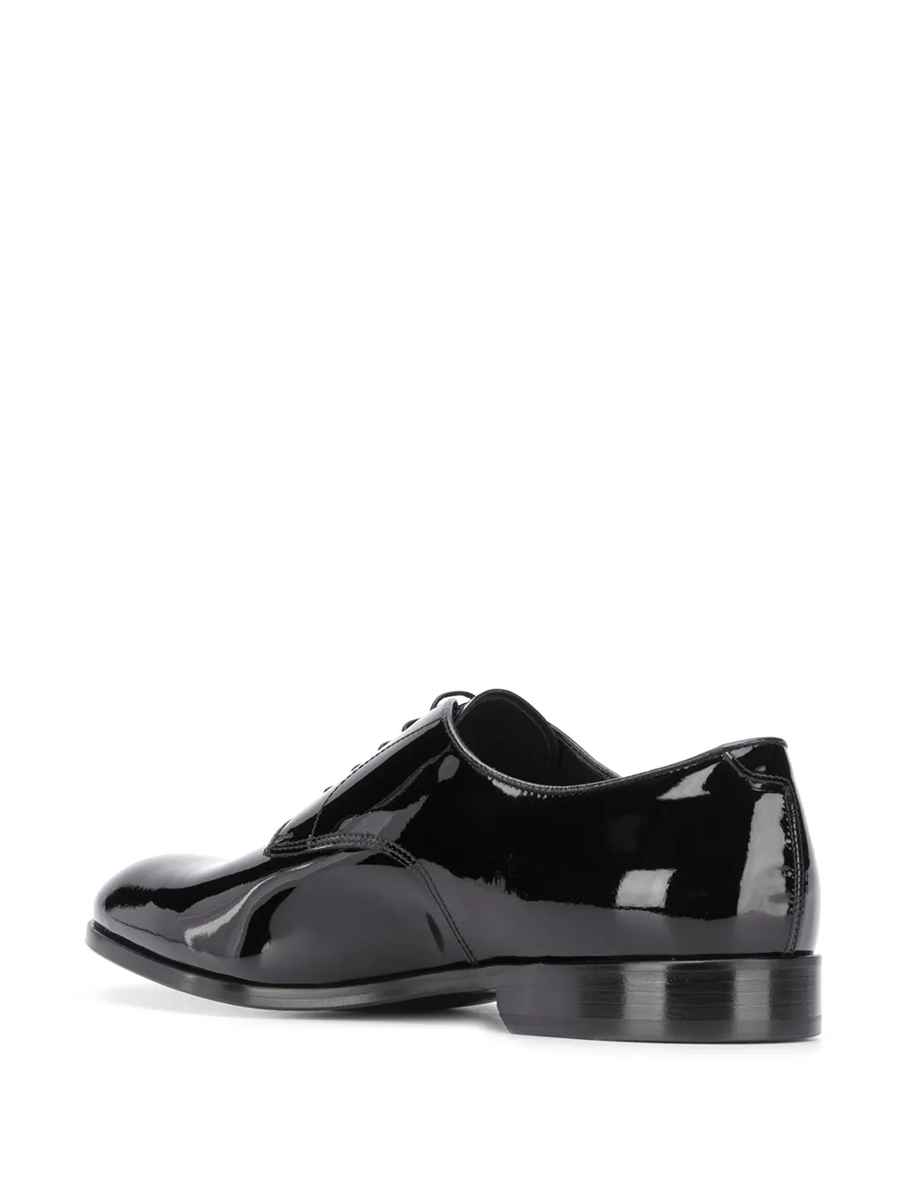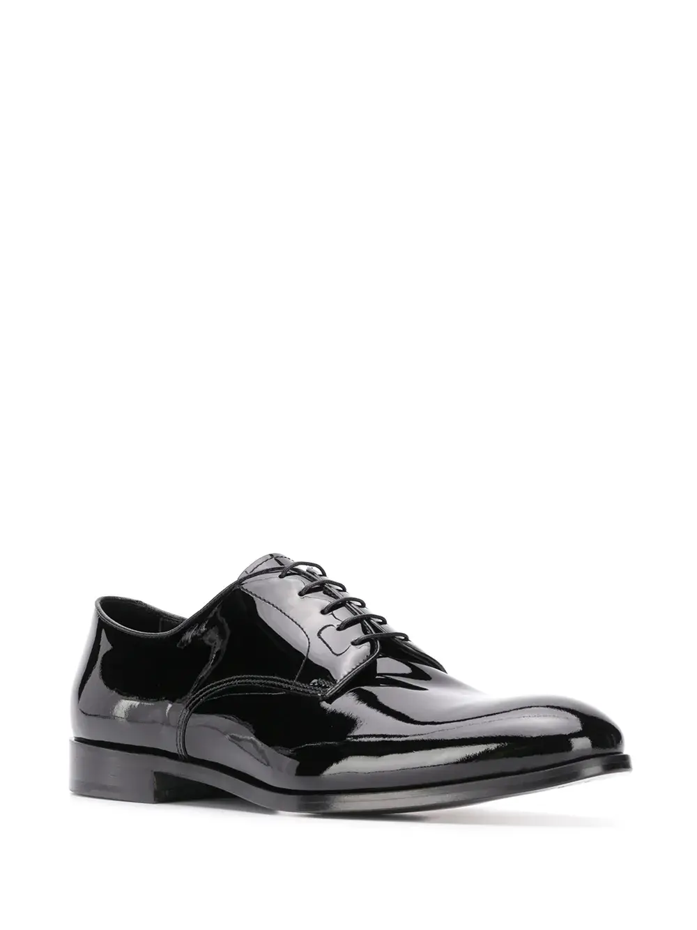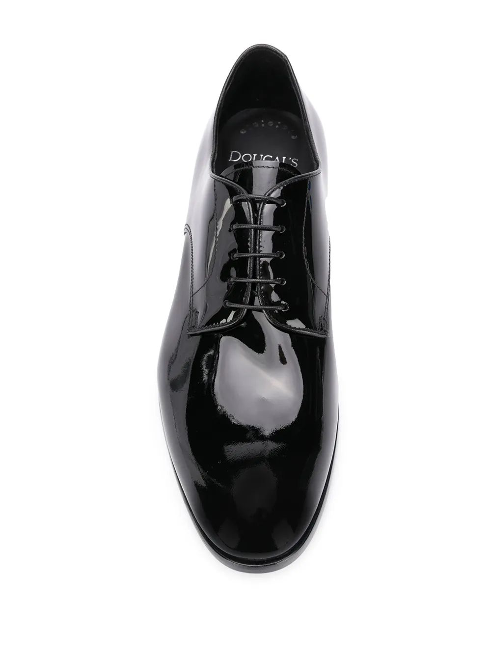 Лакированные оксфорды от Doucal's. Миндалевидный носок, шнуровка спереди, фирменная стелька и низкий каблук. Цвет: черный.