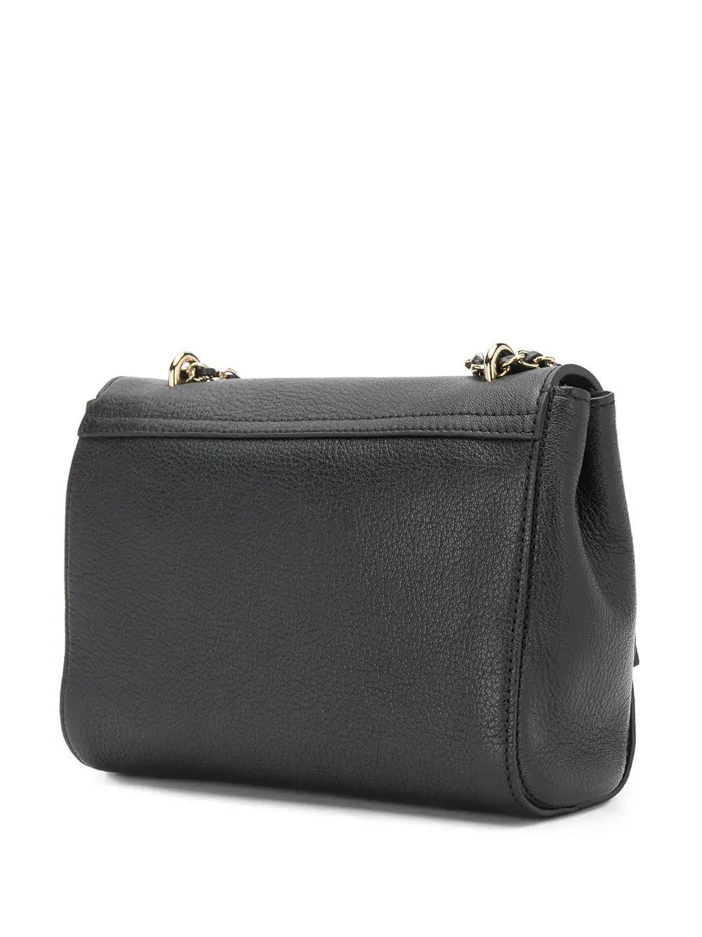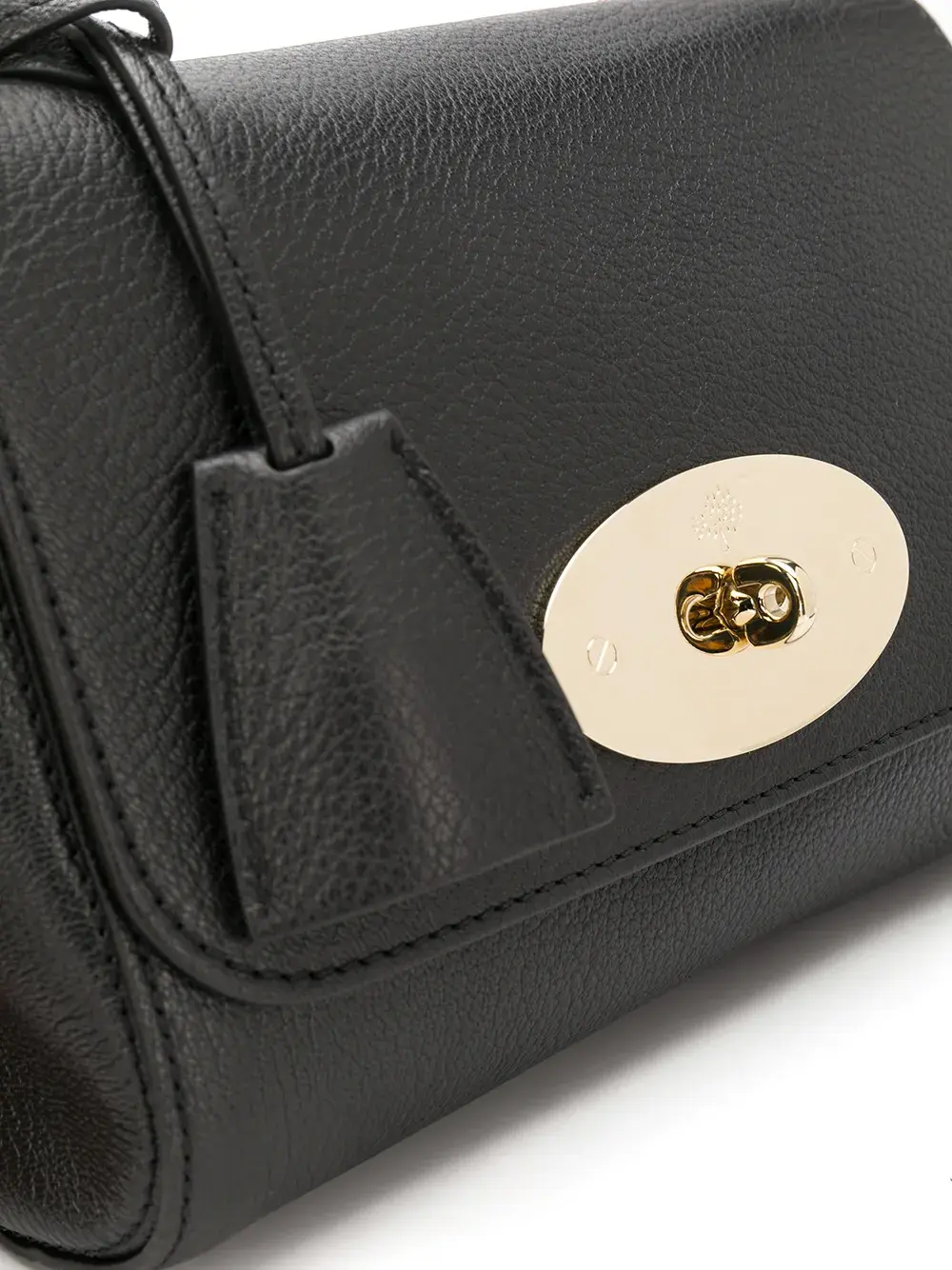 Сумка на плечо Lily от Mulberry. Золотистая фурнитура, кожаный ремень на цепочке, главный внутренний отдел, внутренний карман на молнии, откидной клапан на застежке и кожаный ярлык. Цвет: черный.