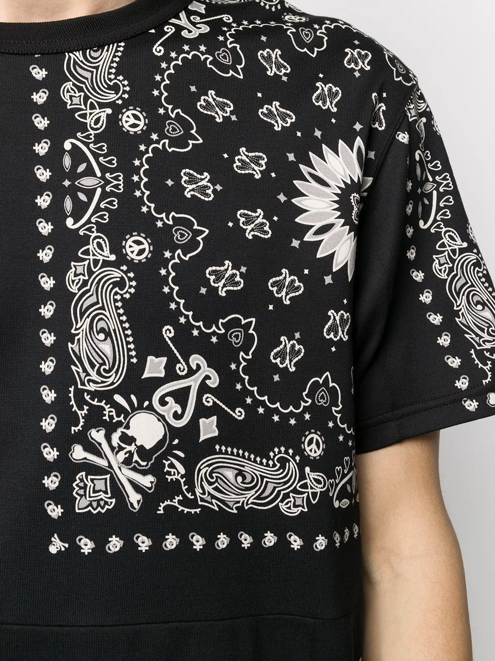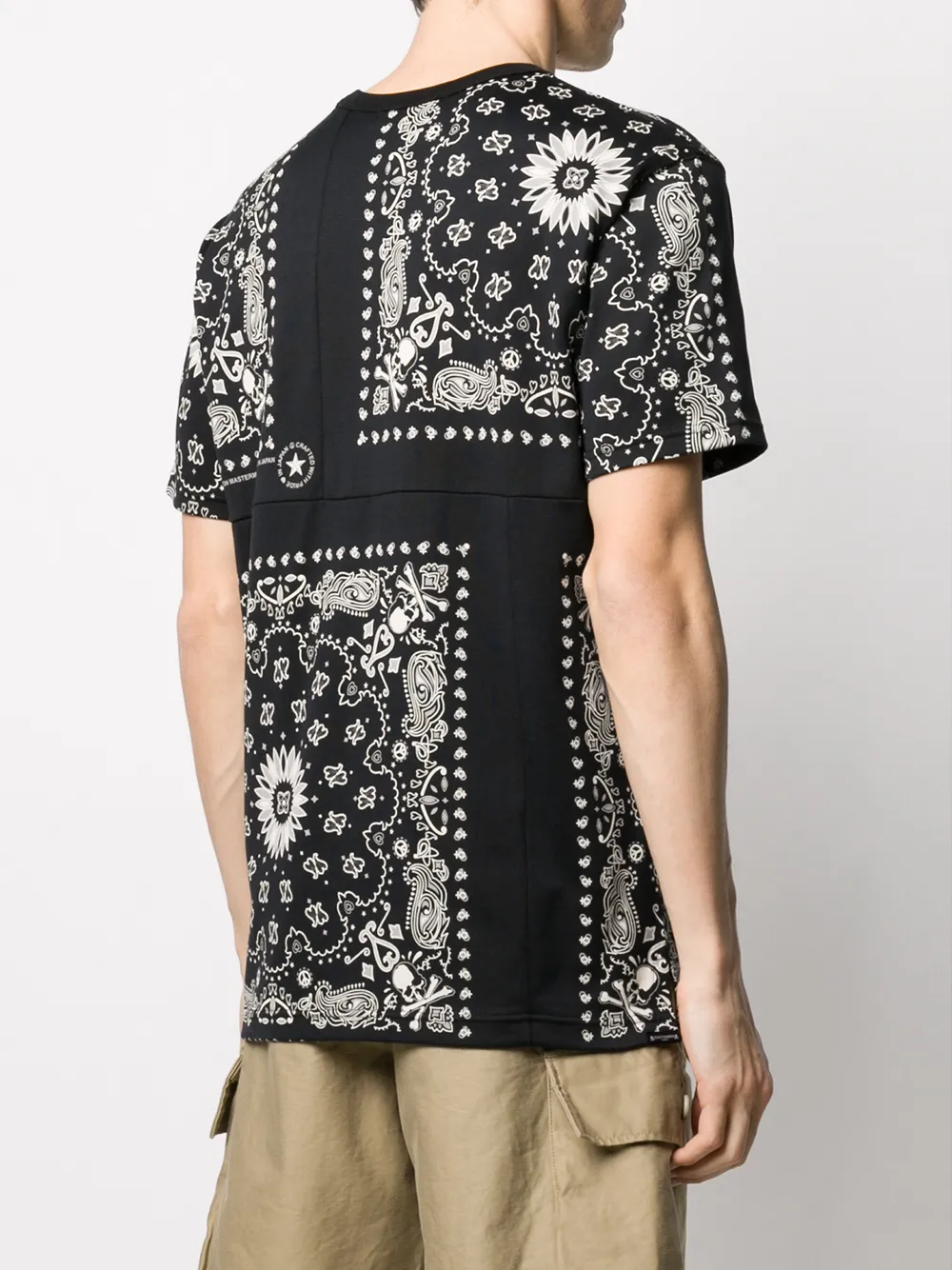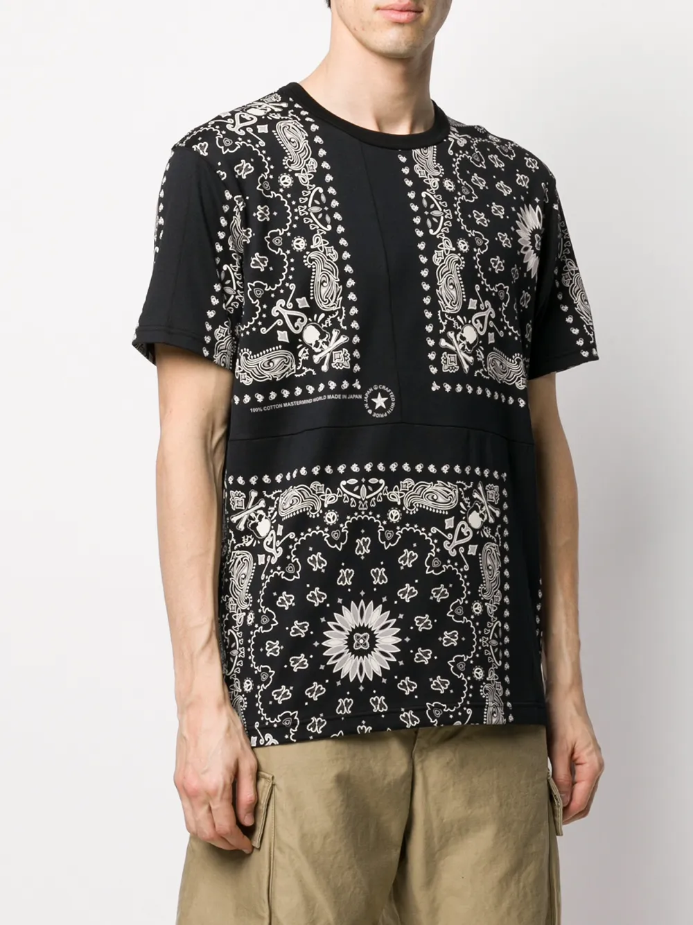 Футболка с принтом пейсли от Mastermind World. Эластичная модель, круглый вырез, короткие рукава и прямой подол.