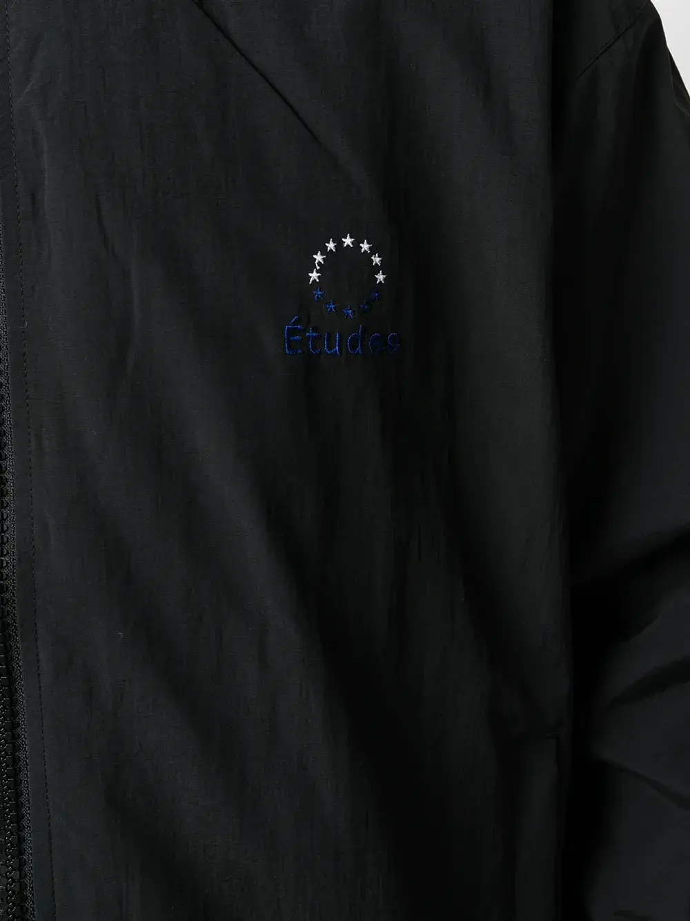 Бомбер на молнии с логотипом от Études. Логотип на груди, классический воротник, застежка на молнии спереди, длинные рукава, узкие манжеты и боковые карманы. Цвет: черный.