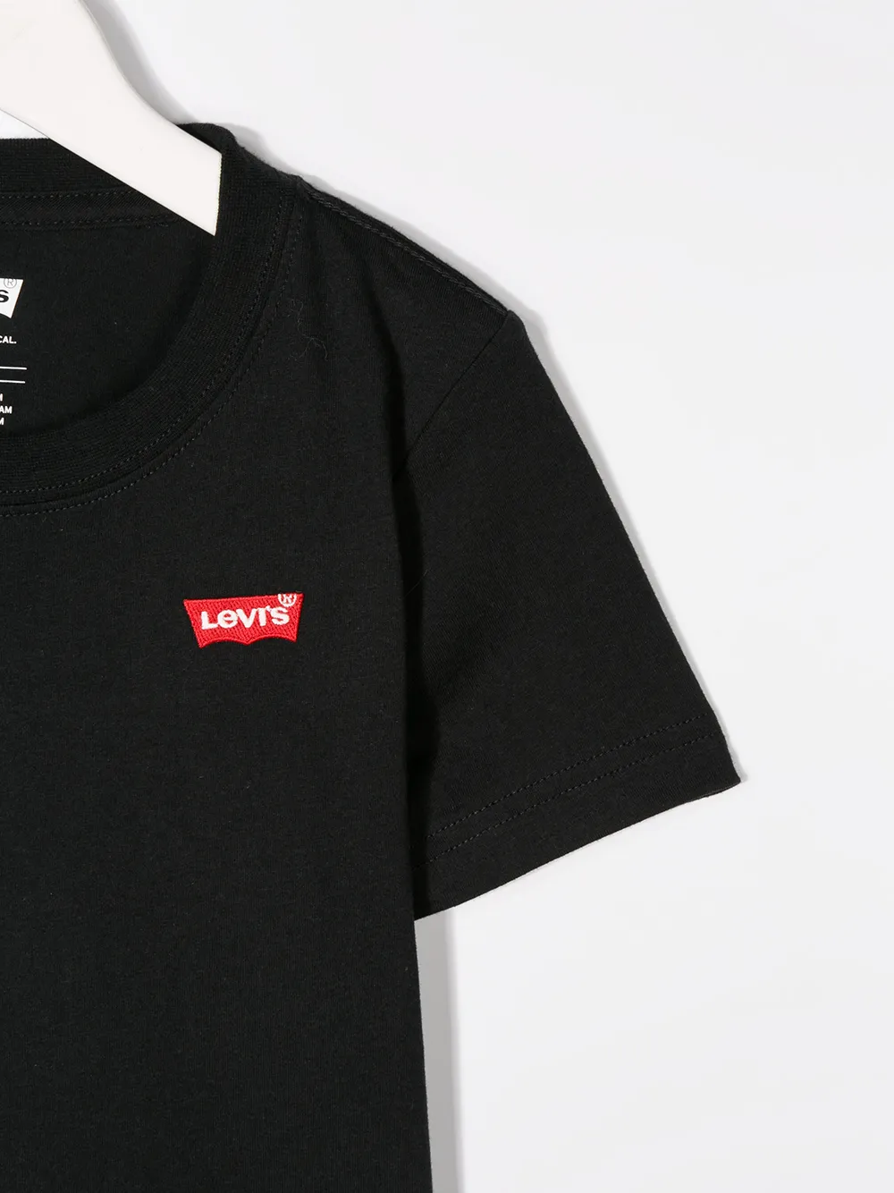 Футболка с вышитым логотипом от Levi's Kids. Контрастный вышитый логотип на груди, круглый вырез под горло с окантовкой, короткие рукава и прямой подол. Цвет: черный.