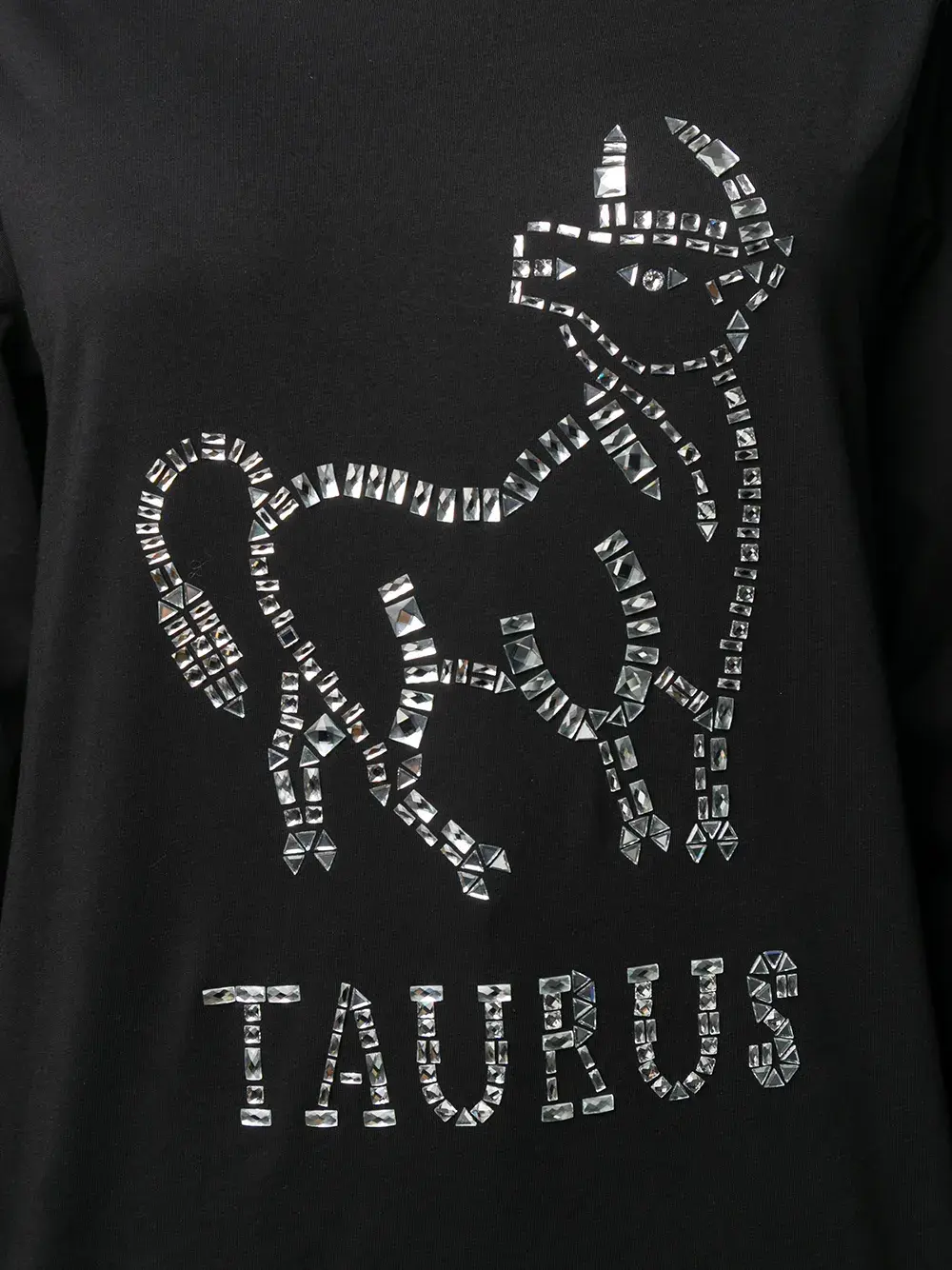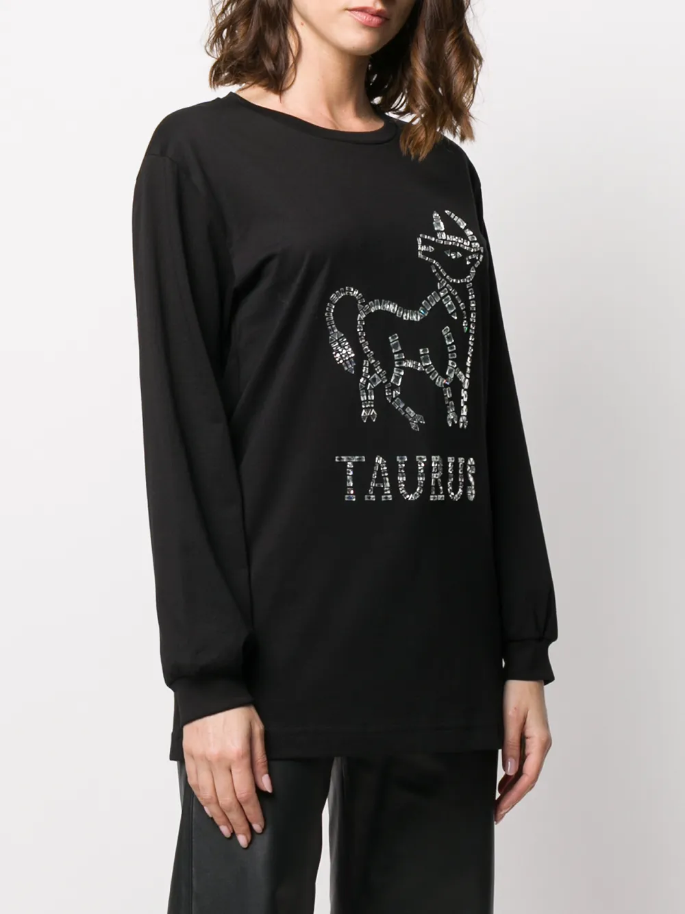 Джемпер Taurus с кристаллами от Alberta Ferretti. Круглый вырез, украшение из кристаллов, длинные рукава и узкие манжеты. Цвет: черный.