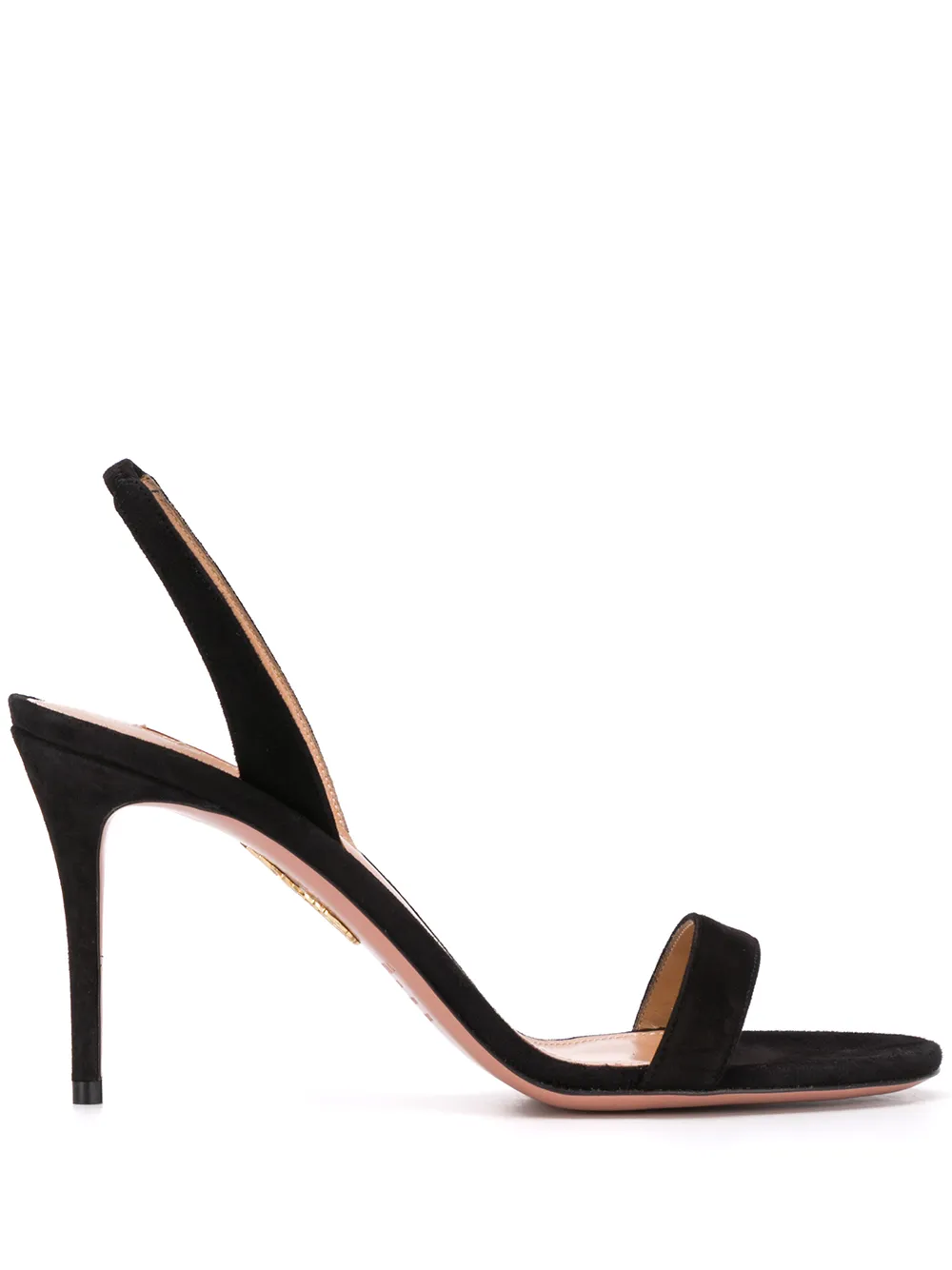 Босоножки So Nude от Aquazzura. Ремешок на пятке, с открытой пяткой, открытый носок, высокая шпилька, фирменная стелька, кожаная подошва и модель слип-он, без застежки. Цвет: черный.